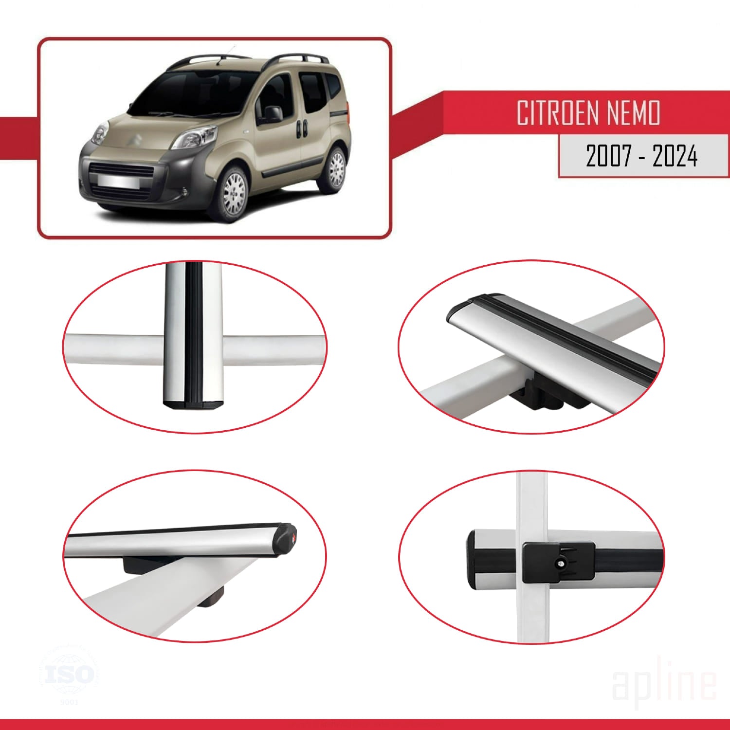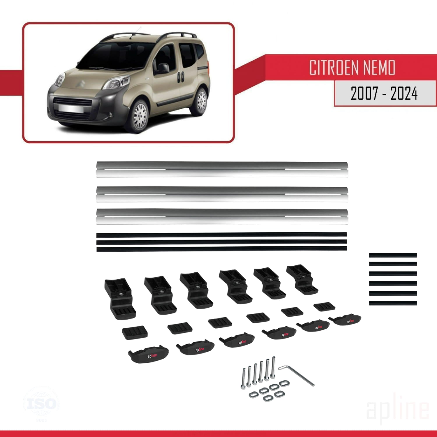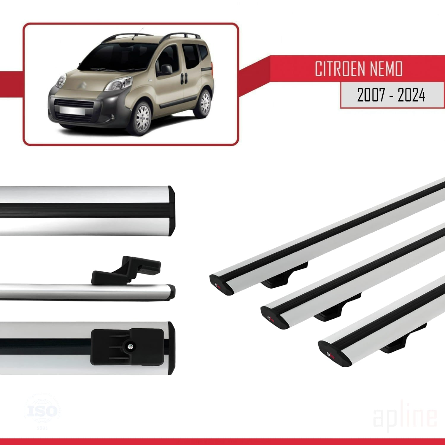 Compatible avec Citroen Nemo 3 (225) 2007-2024 BASIC Model Barres de Toit Railing Porte-Bagages de Voiture Gris Aluminium 3 Barres