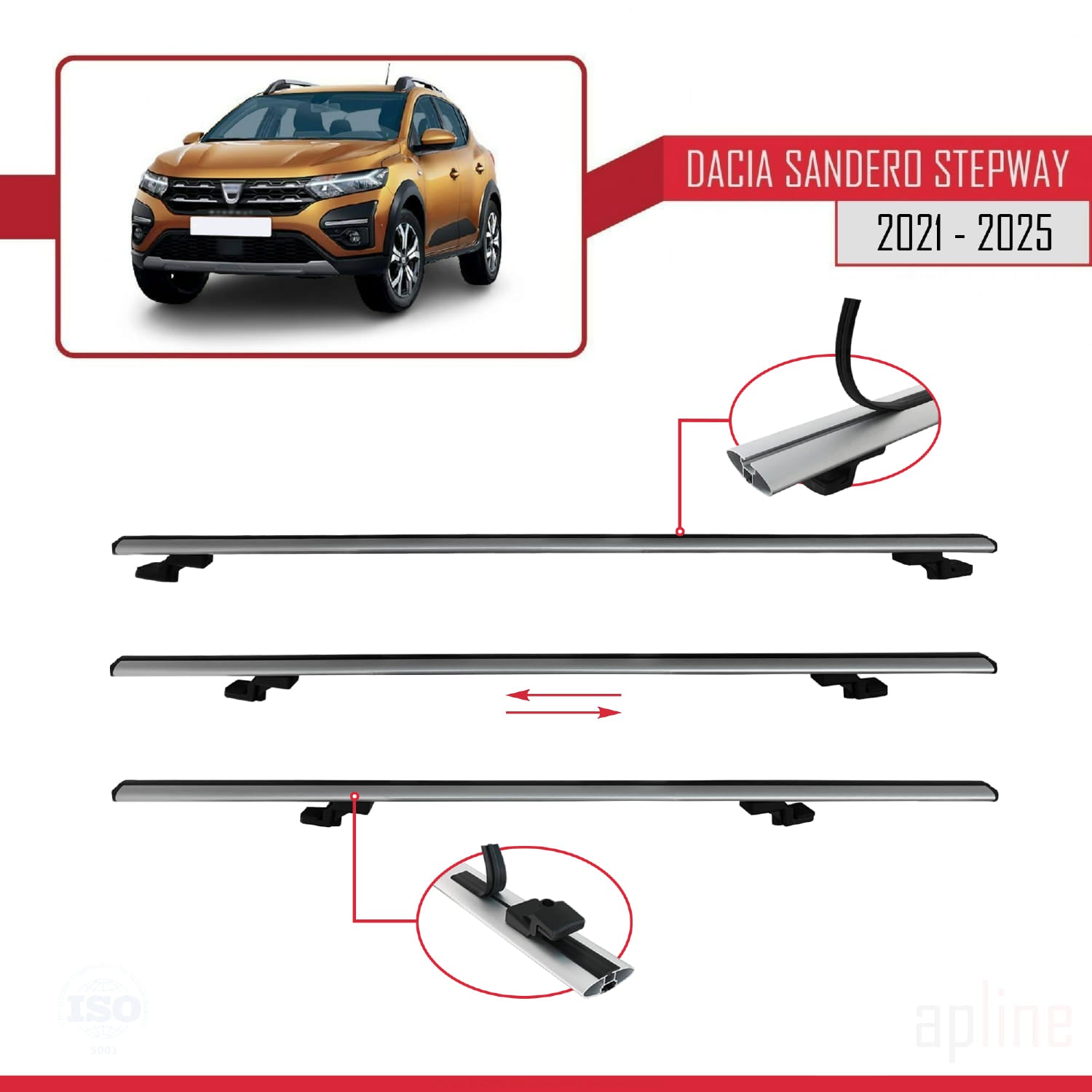 Compatible avec Dacia Sandero Stepway 3 2021-2025 BASIC Model Barres de Toit Railing Porte-Bagages de Voiture Gris Aluminium 3 Barres