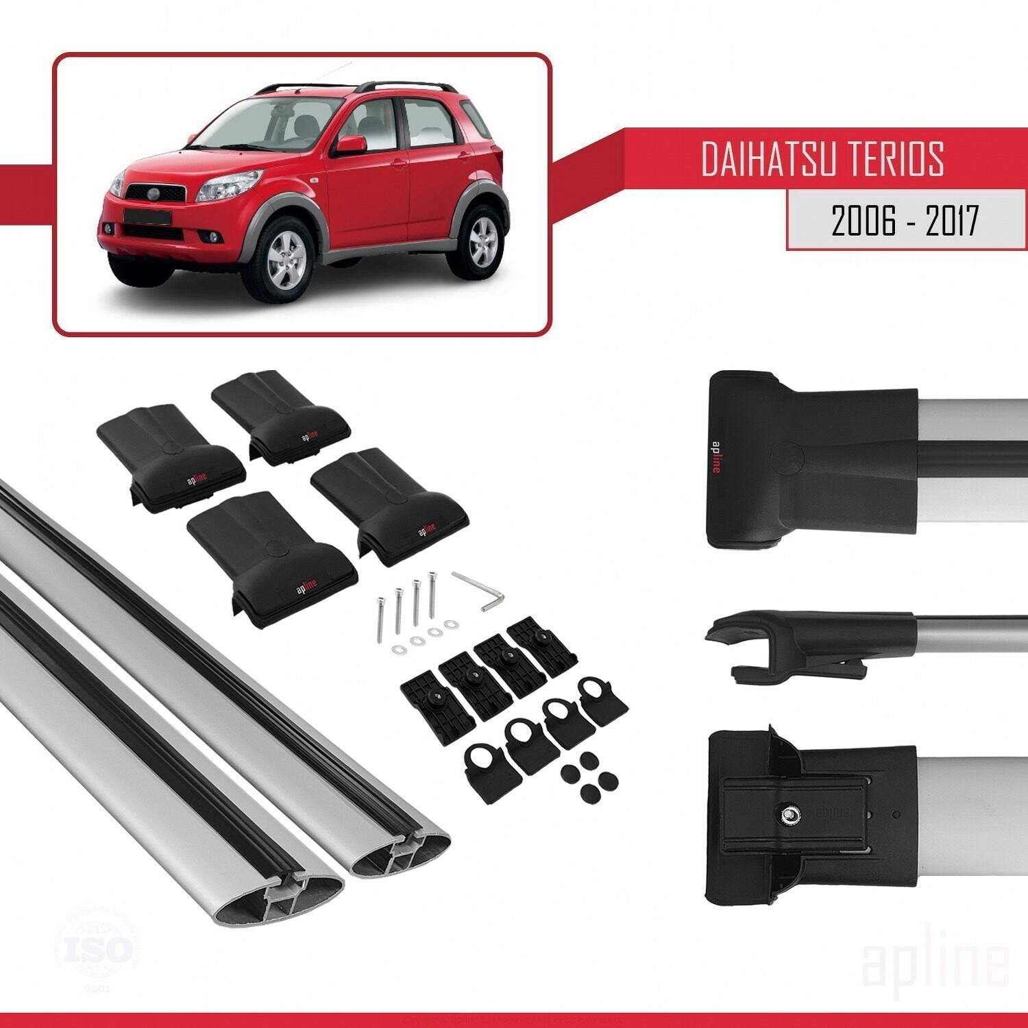 Compatible avec Daihatsu Terios 2 (J200) 2006-2017 FLY Model Barres de Toit Railing Porte-Bagages de Voiture Gris Aluminium 2 Barres