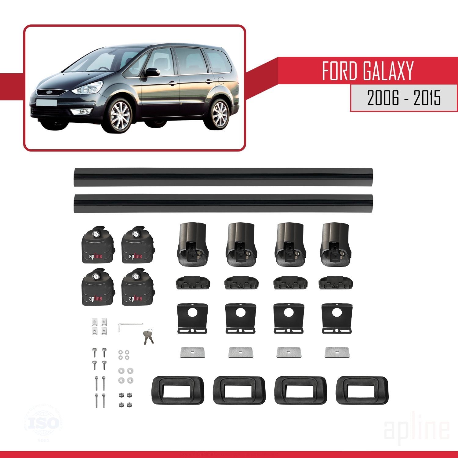 Compatible avec Ford Galaxy (MK3) 2006-2015 ACE-3 Barres de Toit Railing Porte-Bagages de Voiture Noir Aluminium 2 Barres