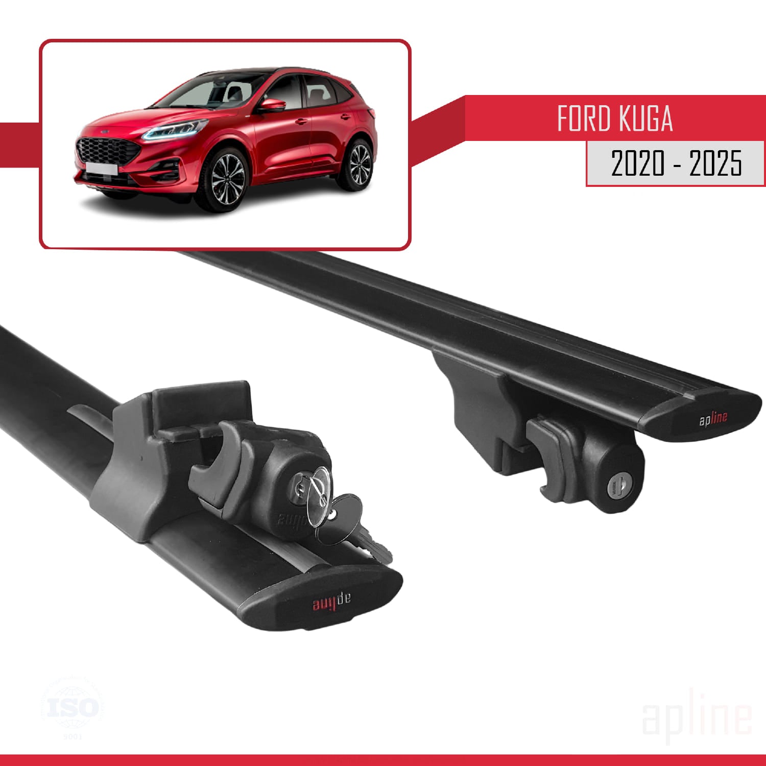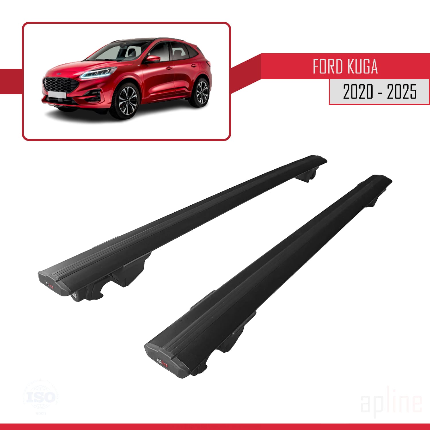 Compatible avec Ford Kuga 3 (CX482) 2020-2024 HOOK Model Barres de Toit Railing Porte-Bagages de Voiture Noir Aluminium 2 Barres