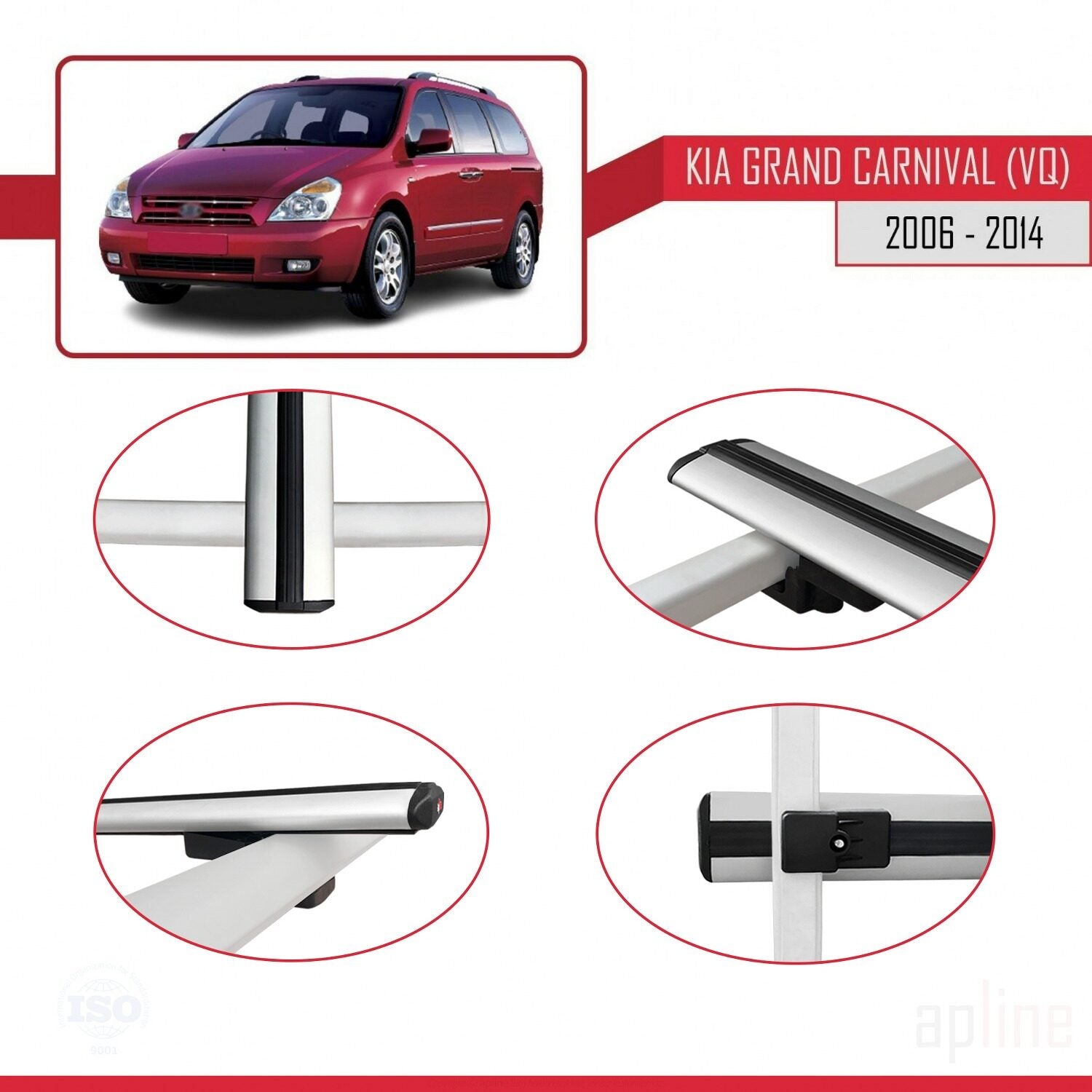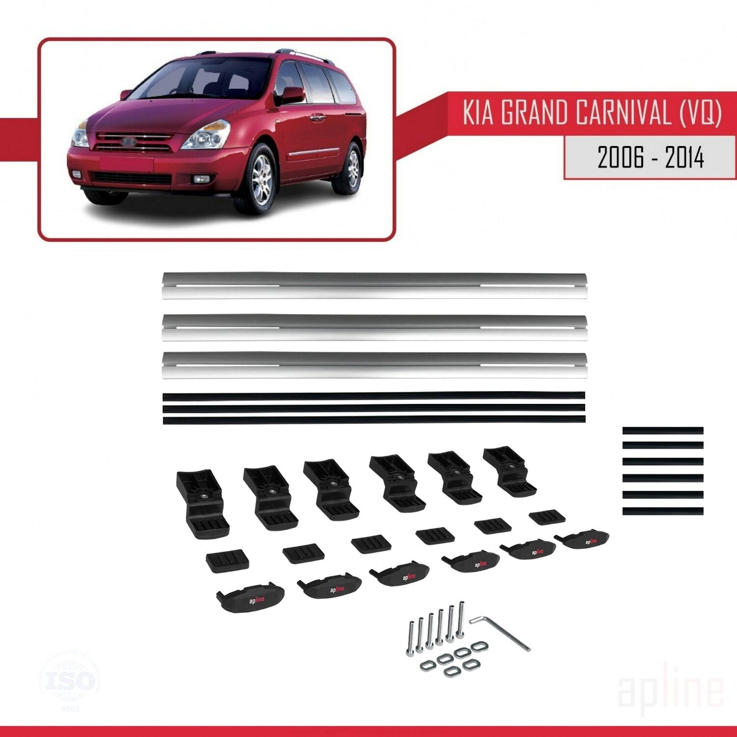 Compatible avec Kia Grand Carnival 2 (VQ) 2006-2014 BASIC Model Barres de Toit Railing Porte-Bagages de Voiture Gris Aluminium 3 Barres