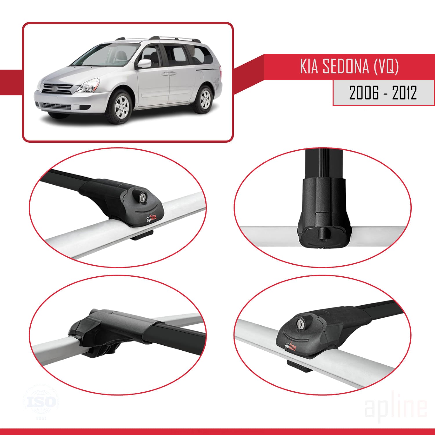 Compatible avec Kia Sedona 2 (VQ) 2006-2012 ACE-1 Barres de Toit Railing Porte-Bagages de Voiture Noir Aluminium 2 Barres