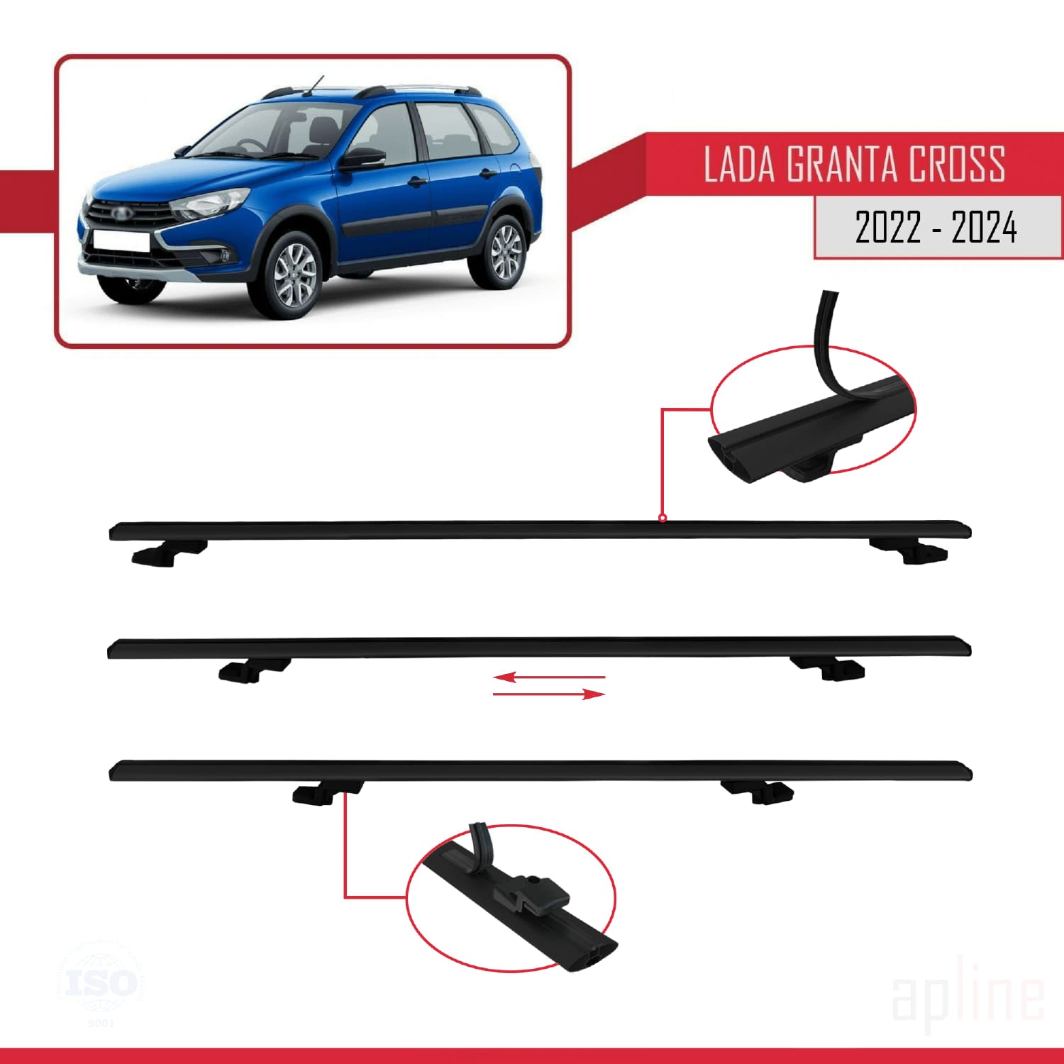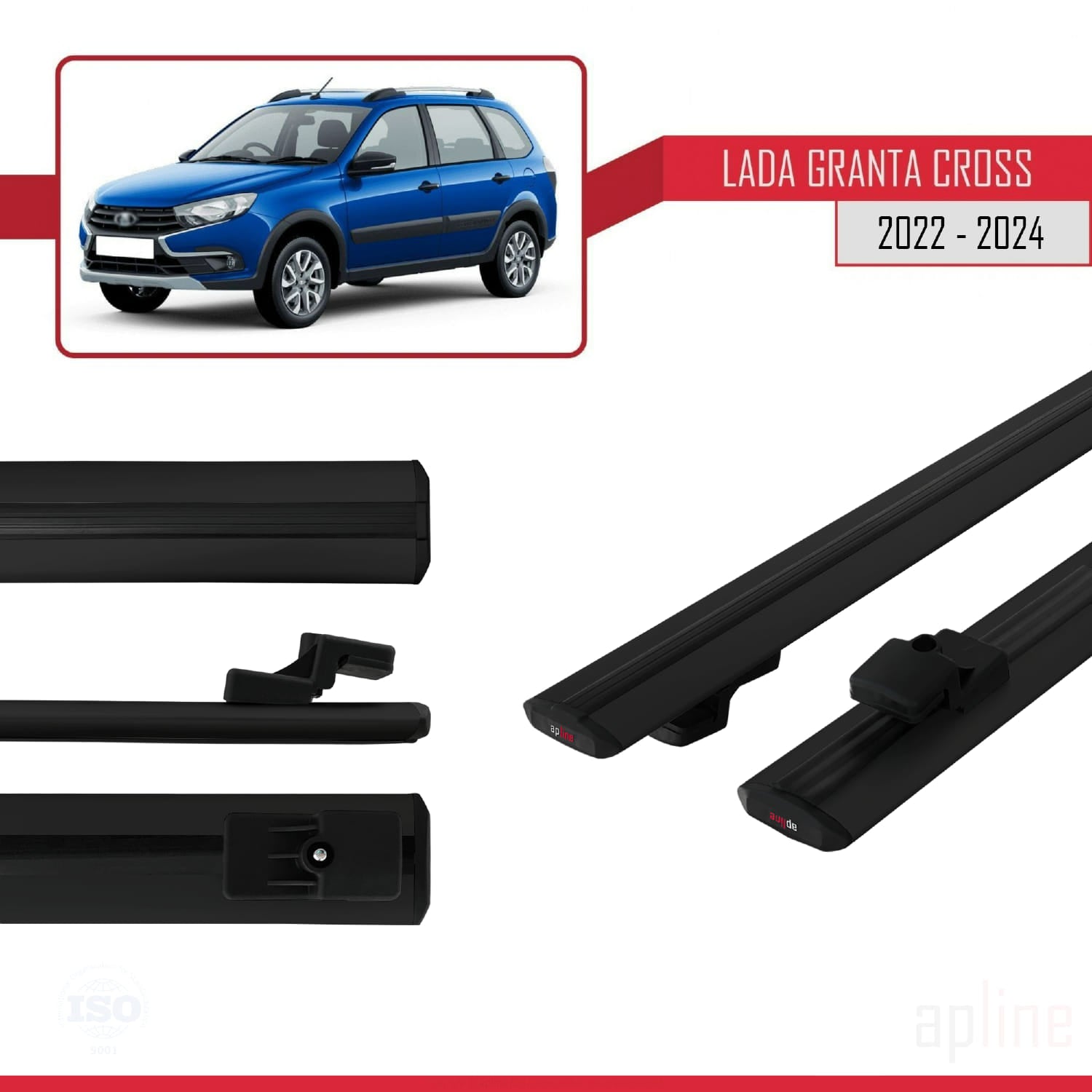 Compatible avec Lada Granta Cross 2022-2024 BASIC Model Barres de Toit Railing Porte-Bagages de Voiture Noir Aluminium 2 Barres