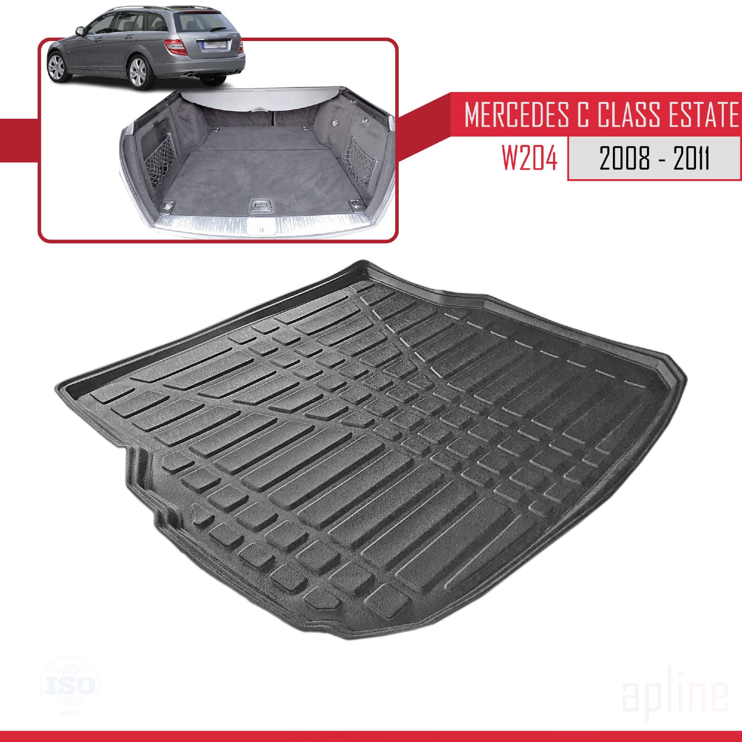 Compatible avec Mercedes Classe C 3 (S204) Pre-Facelift 2008-2011 Flexible Tapis de Coffre Plancher de Chargement Noir