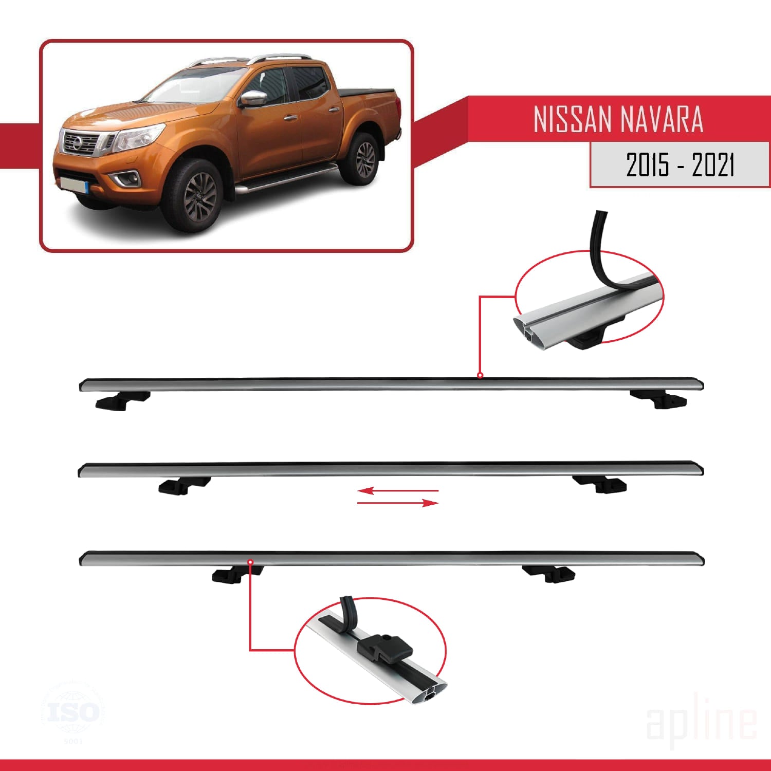 Compatible avec Nissan Navara 4 (D23) 2015-2021 BASIC Model Barres de Toit Railing Porte-Bagages de Voiture Gris Aluminium 3 Barres