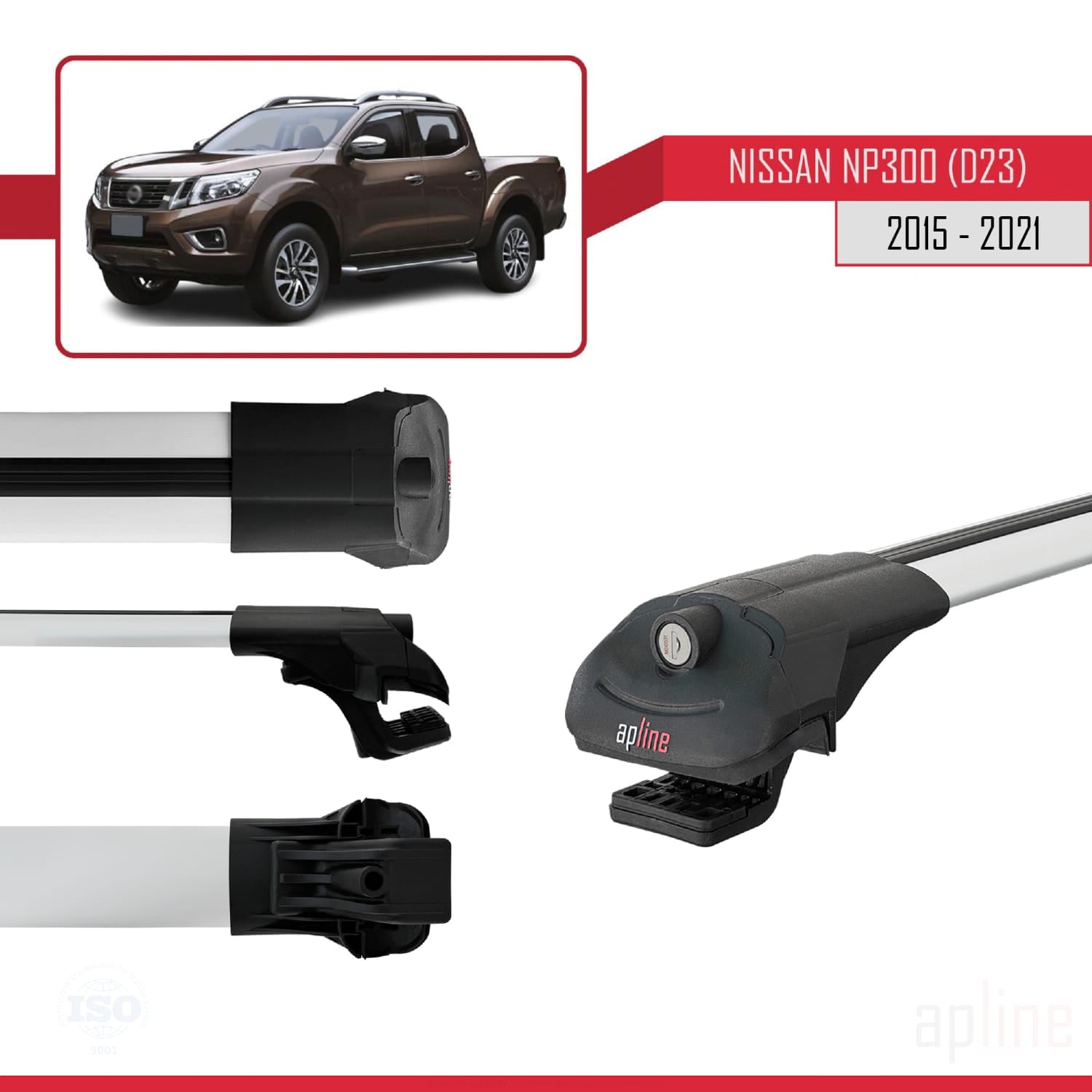 Compatible with Nissan NP300 (D23) 2015-2021 ACE-1 Car Roof Rack Cross Bar Grey Aluminium 2 Bars
