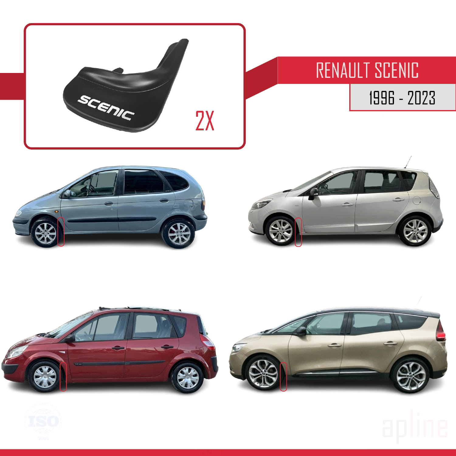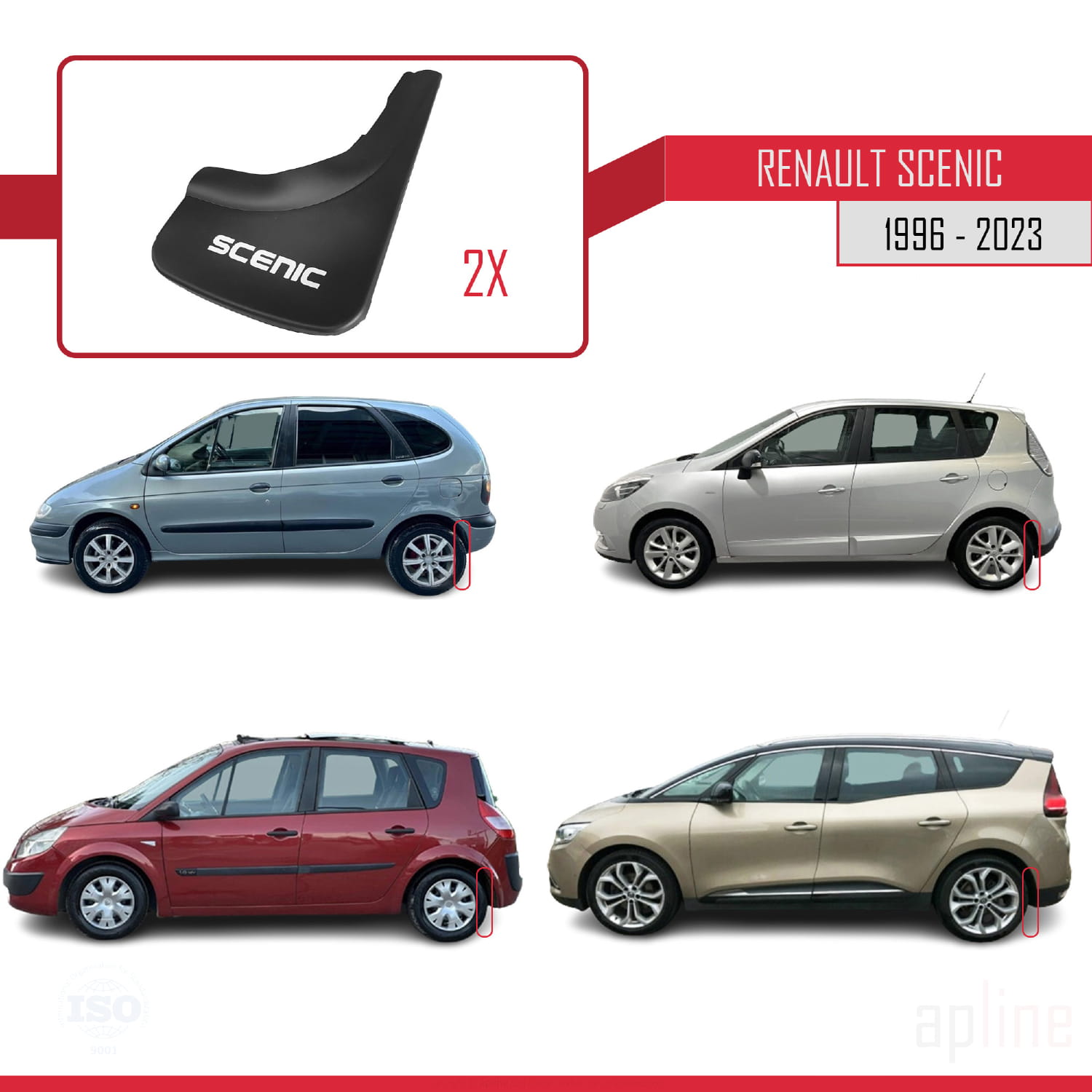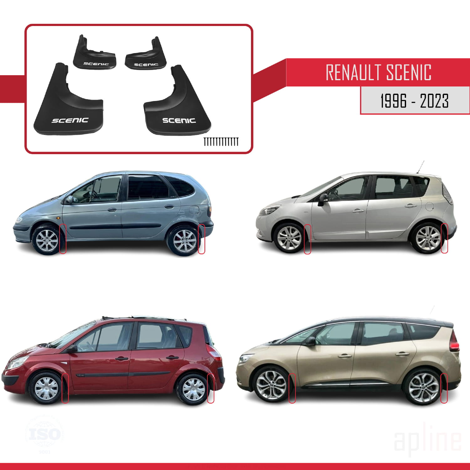 Compatible avec Renault Scenic 1996-2023 Jeu de Bavettes Garde-boue Avant et Arrière de Voiture 4 Pcs Noir