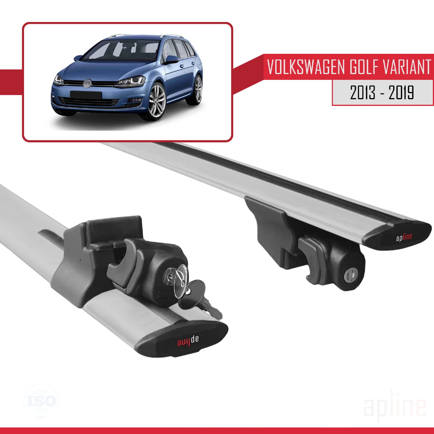 Compatible avec Volkswagen Golf 7 (5G) Variant 2013-2019 HOOK Model Barres de Toit Railing Porte-Bagages de Voiture Gris Aluminium 2 Barres