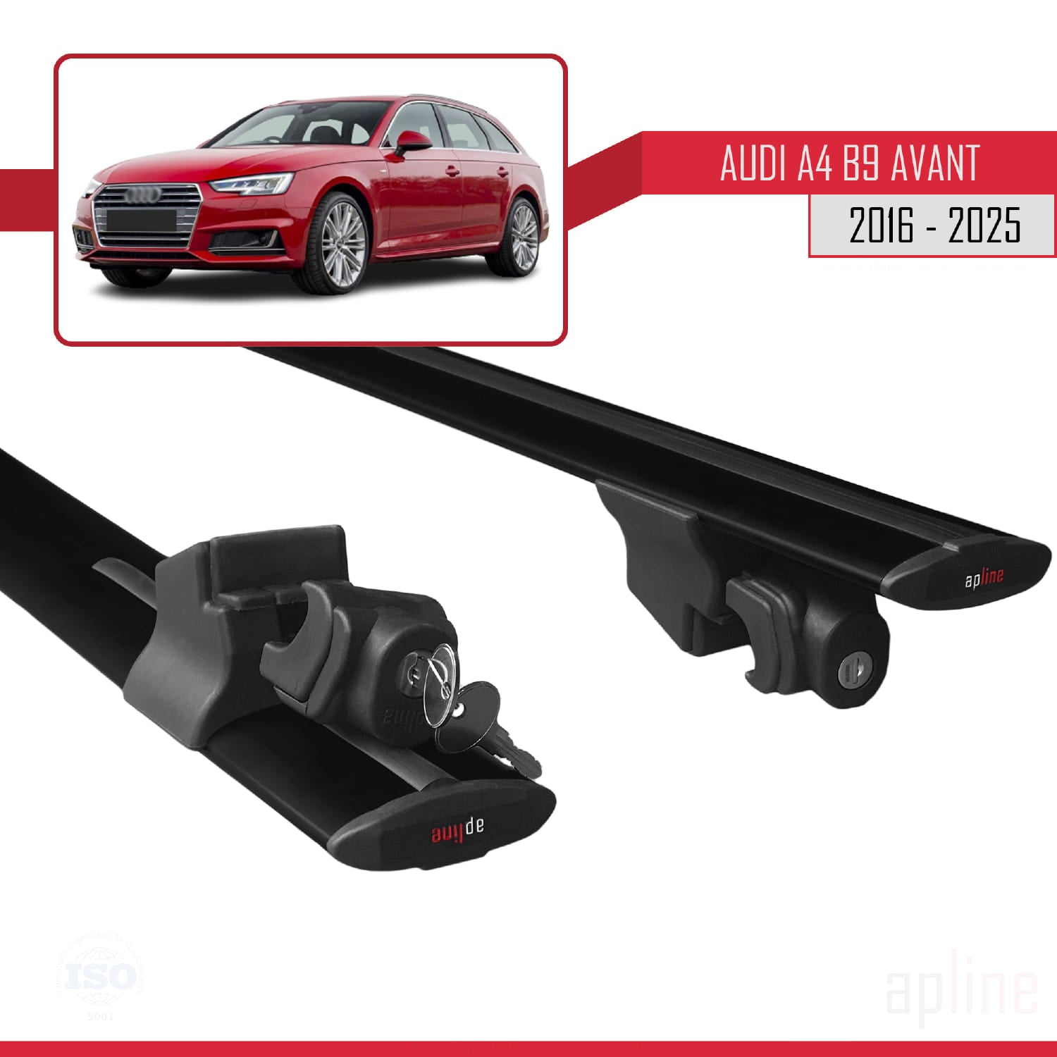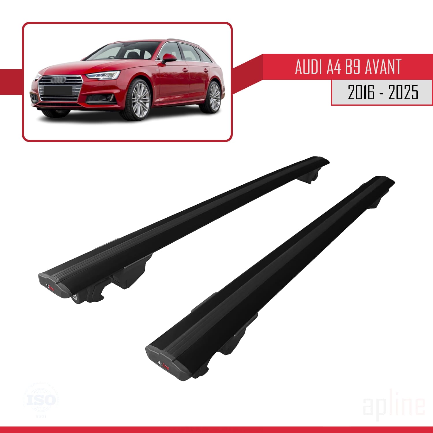 Compatible avec A4 (B9) Avant 2016-2025 HOOK Model Barres de Toit Railing Porte-Bagages de Voiture Noir Aluminium 2 Barres