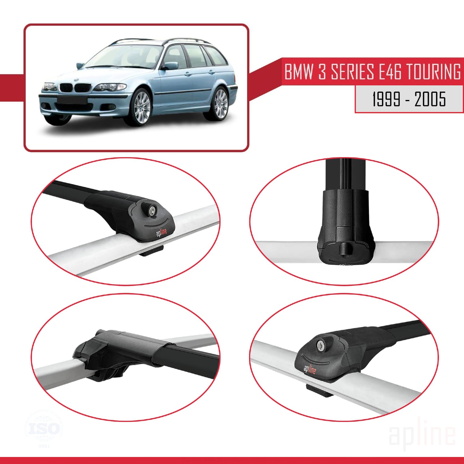 Compatible avec BMW Série 3 (E46) Touring 1999-2005 ACE-1 Barres de Toit Railing Porte-Bagages de Voiture Noir Aluminium 3 Barres