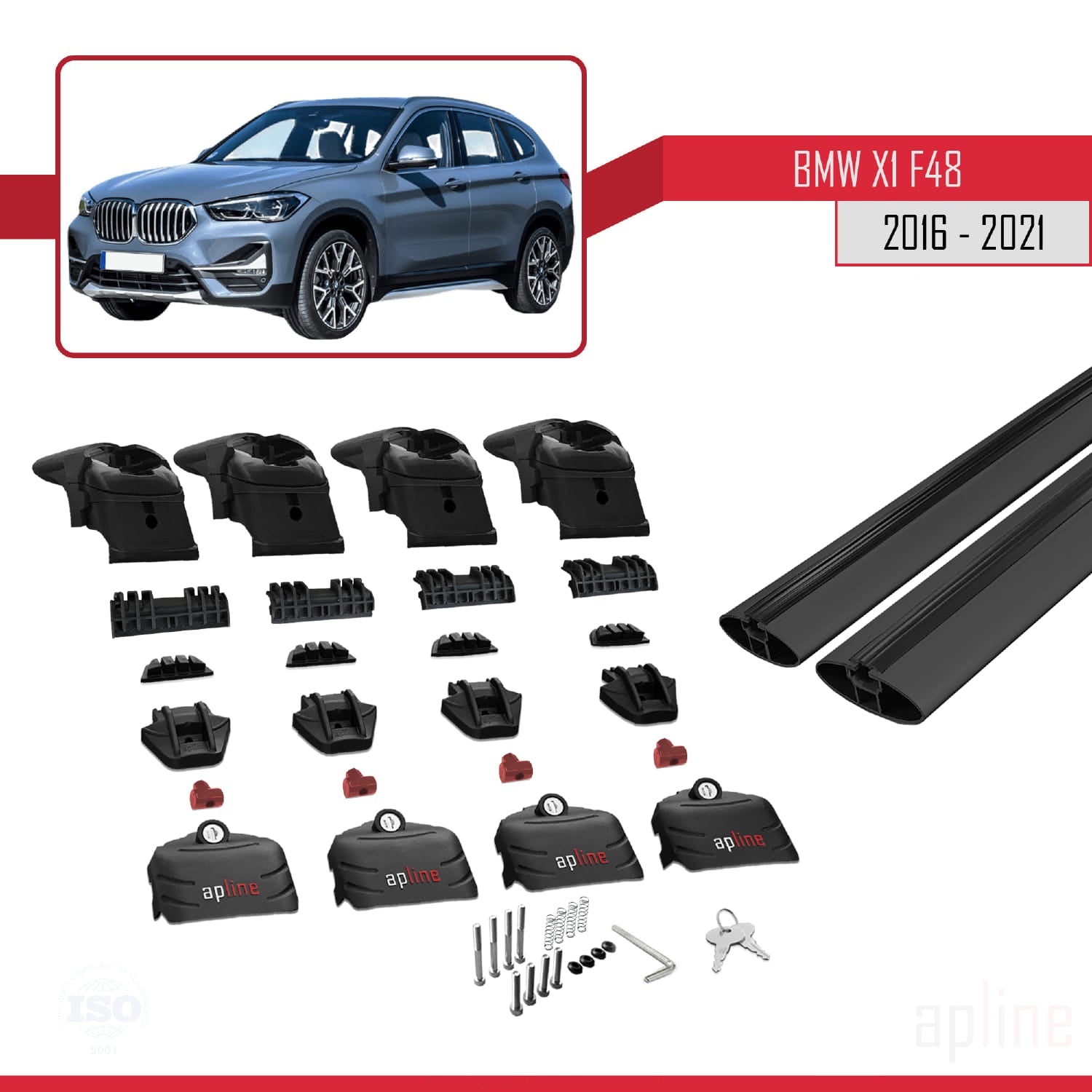 Compatible avec BMW X1 (F48) 2016-2022 ACE-2 Barres de Toit Railing Porte-Bagages de Voiture Noir Aluminium 2 Barres