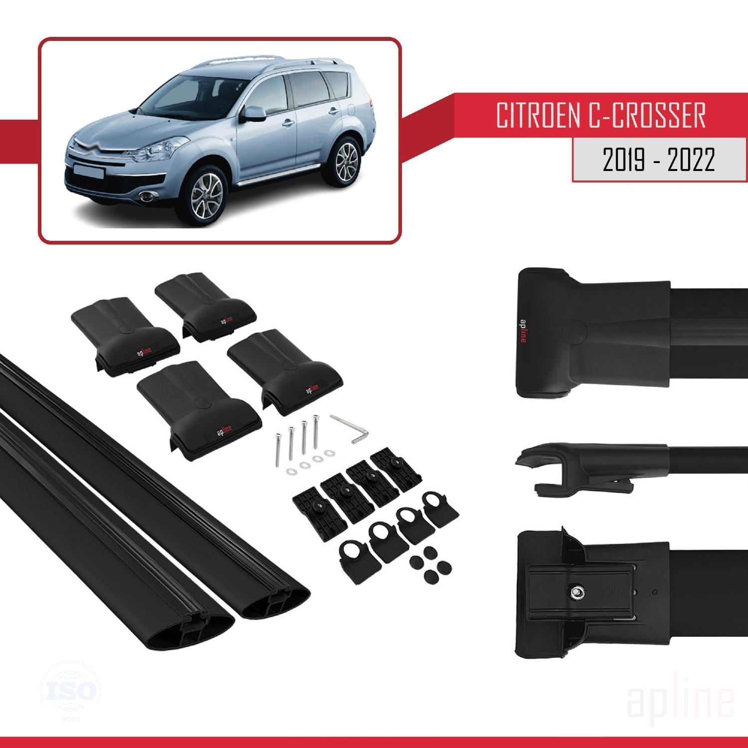 Compatible avec Citroen Berlingo 3 (K9) 2019-2022 FLY Model Barres de Toit Railing Porte-Bagages de Voiture Noir Aluminium 2 Barres