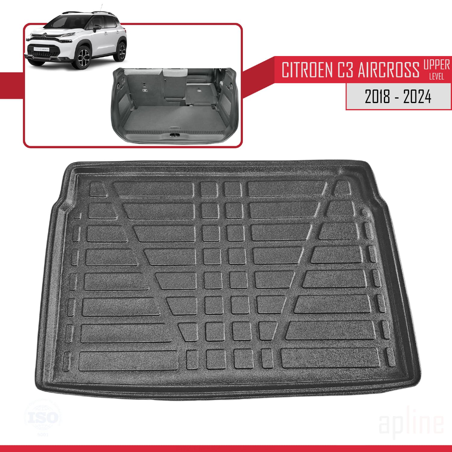 Compatible avec Citroen C3 Aircross (A88) 2018-2024 Flexible Tapis de Coffre Plancher de Chargement Supérieur Noir
