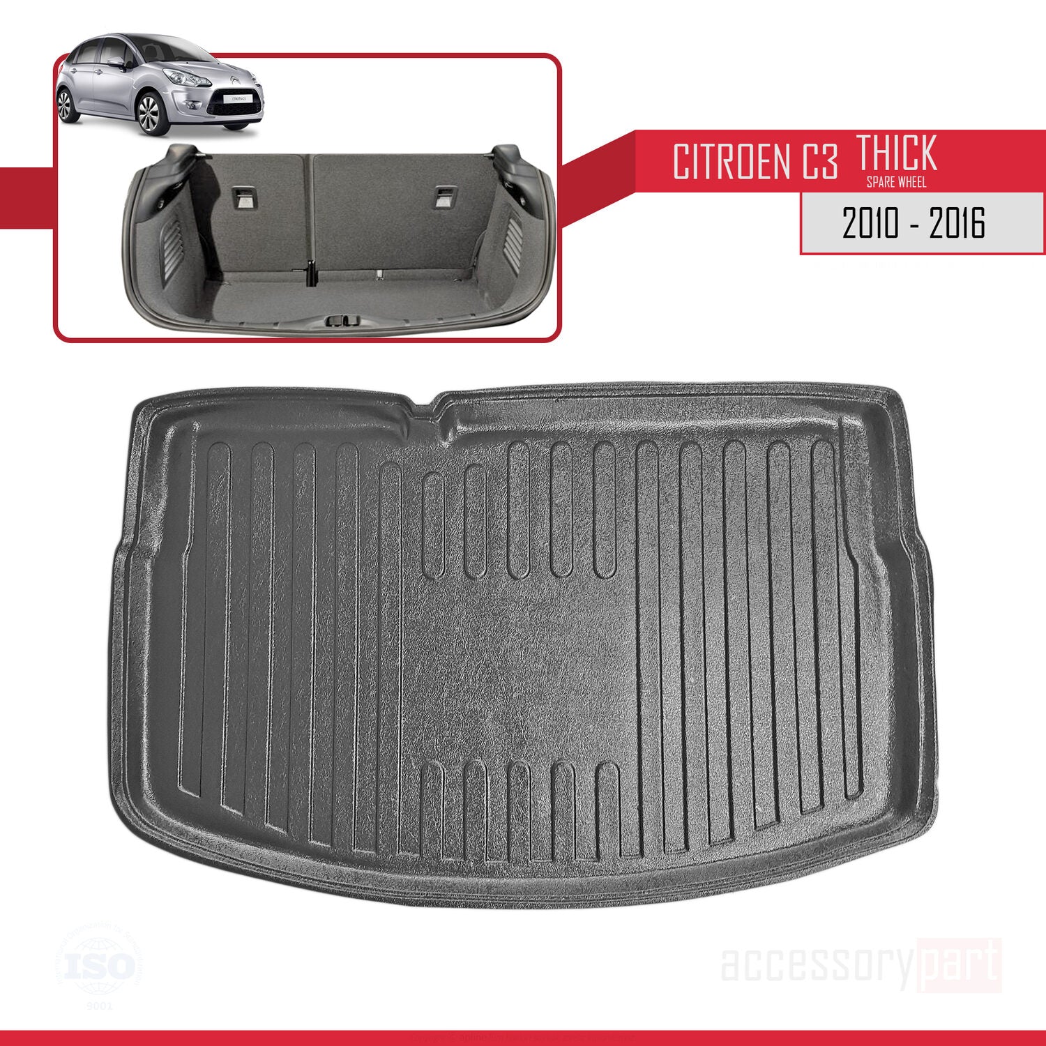 Compatible avec Citroen C3 Aircross Based Model 2010-2016 Flexible Tapis de Coffre Plancher de Chargement Noir