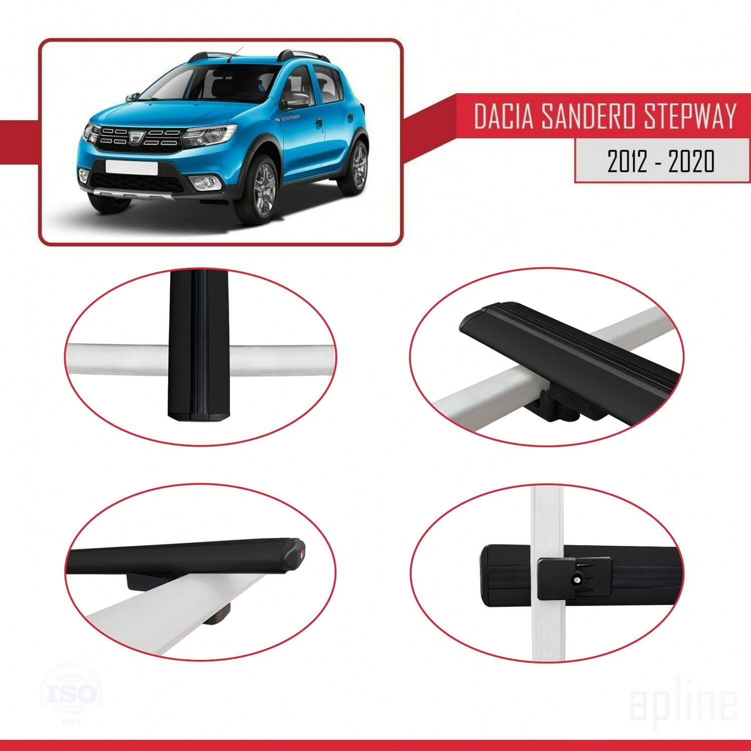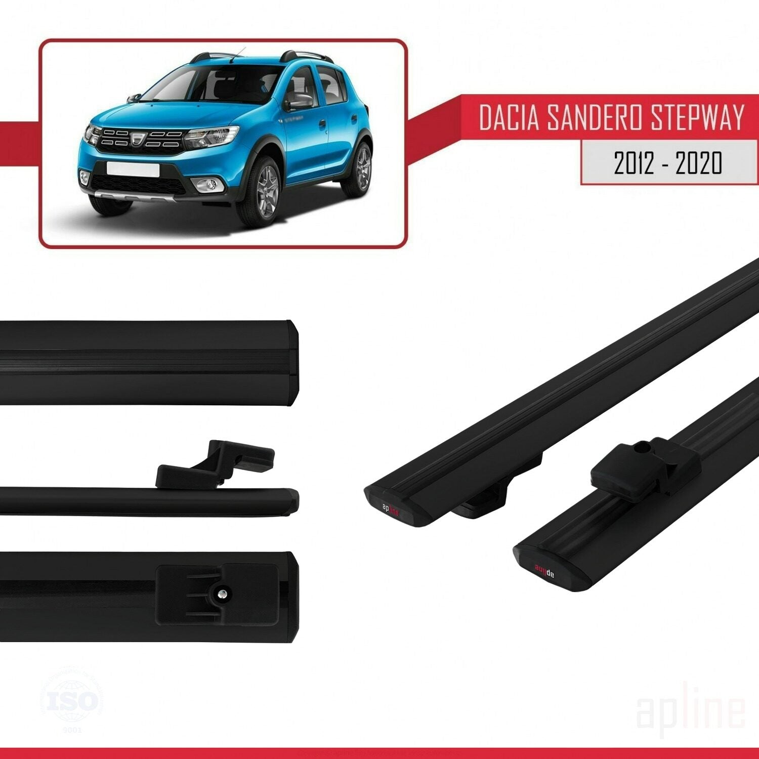 Compatible avec Dacia Sandero Stepway 2 2012-2020 BASIC Model Barres de Toit Railing Porte-Bagages de Voiture Noir Aluminium 2 Barres