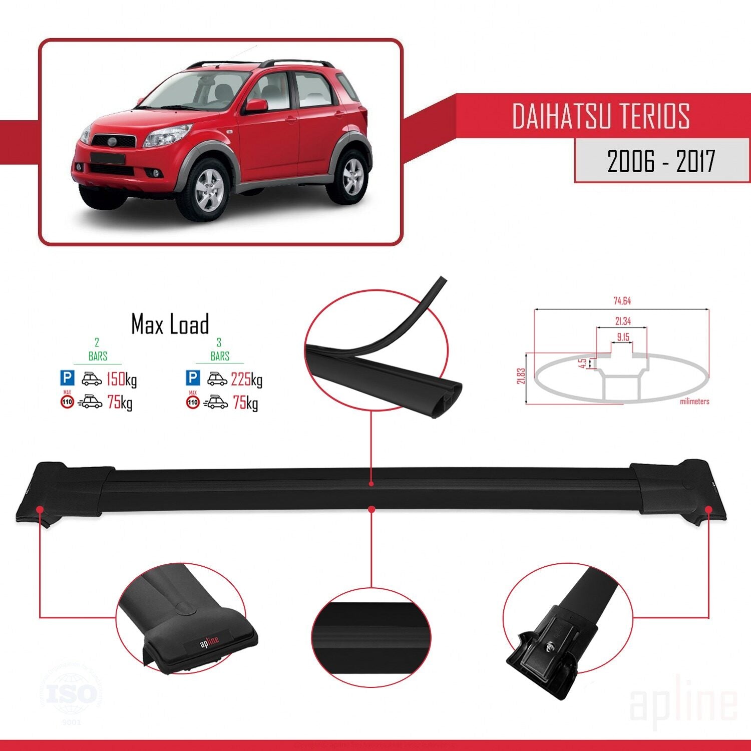 Il est utilisé pour transporter des charges sur votre véhicule. Il est nécessaire pour l'installation de porte-vélos, porte-skis, coffre de toit, etc. Ce produit est monté sur les barres de toit du véhicule. Ce produit ne peut pas être utilisé dans les véhicules dépourvus de barres de toit. Il est compatible avec les modèles qui présentent un espace entre le toit du véhicule et le rail de toit.