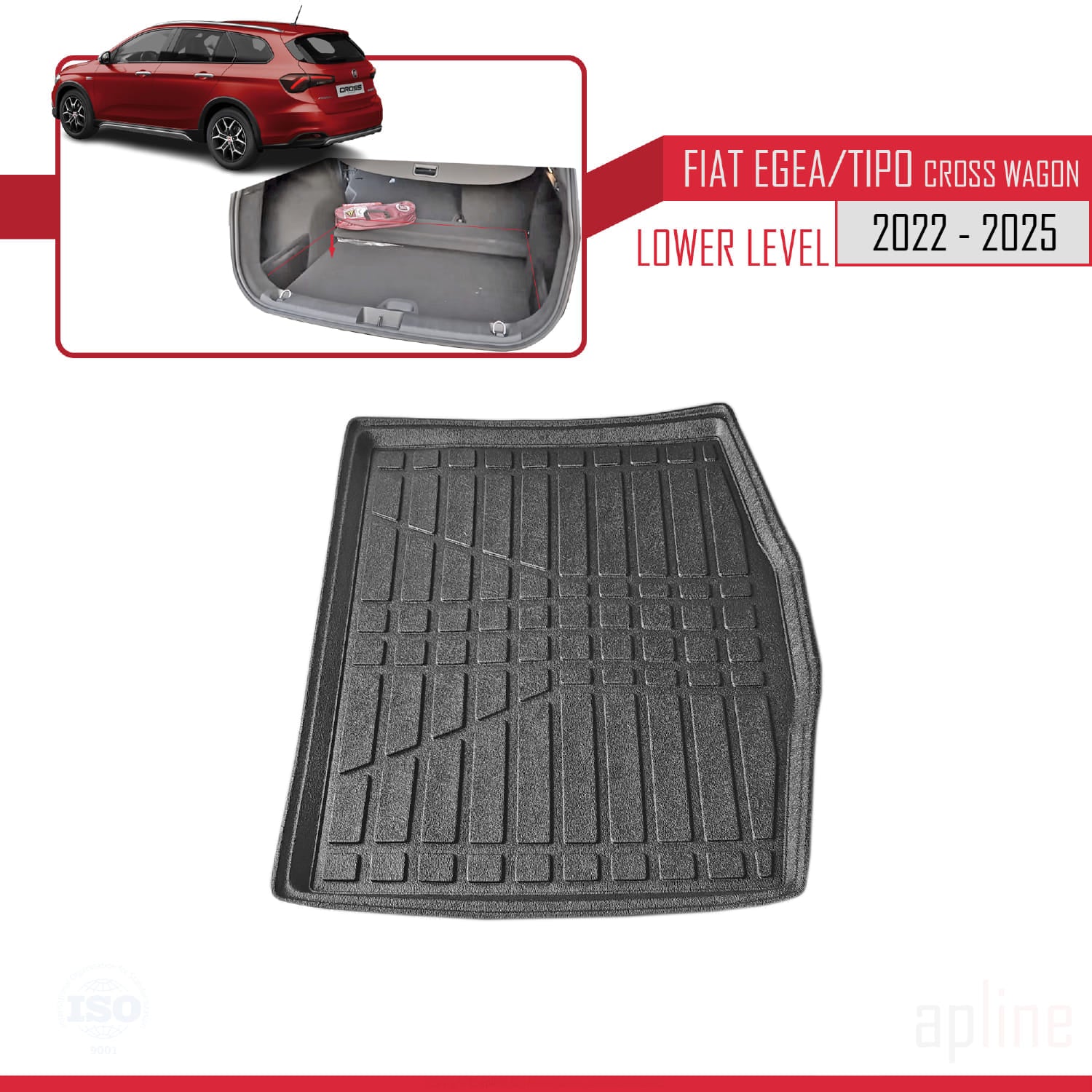 Compatible avec Fiat Egea Cross Wagon 2022-2025 Flexible Tapis de Coffre Plancher de Chargement Inférieur Noir