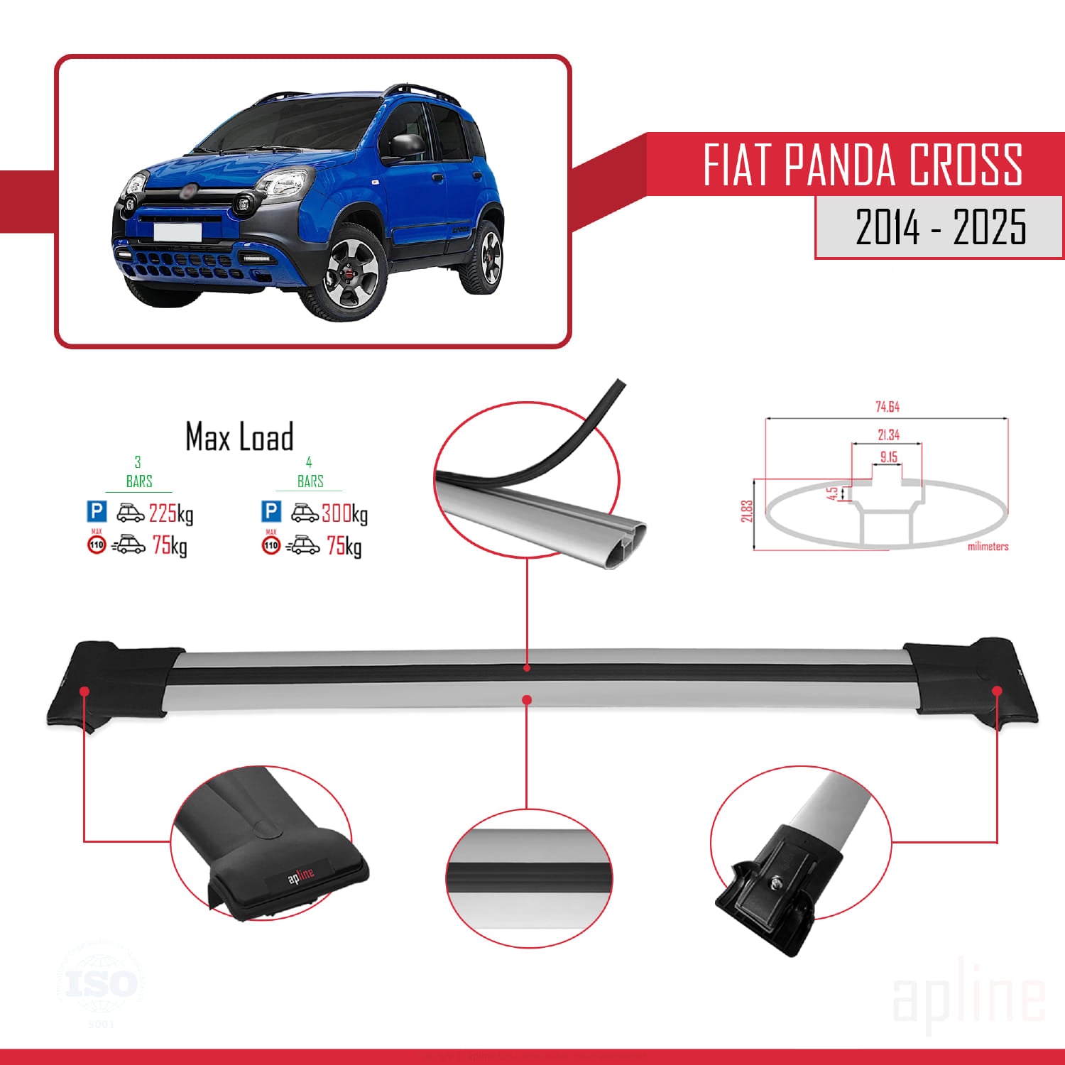 Compatible avec Fiat Panda Cross 2014-2025 FLY Model Barres de Toit Railing Porte-Bagages de Voiture Gris Aluminium 3 Barres