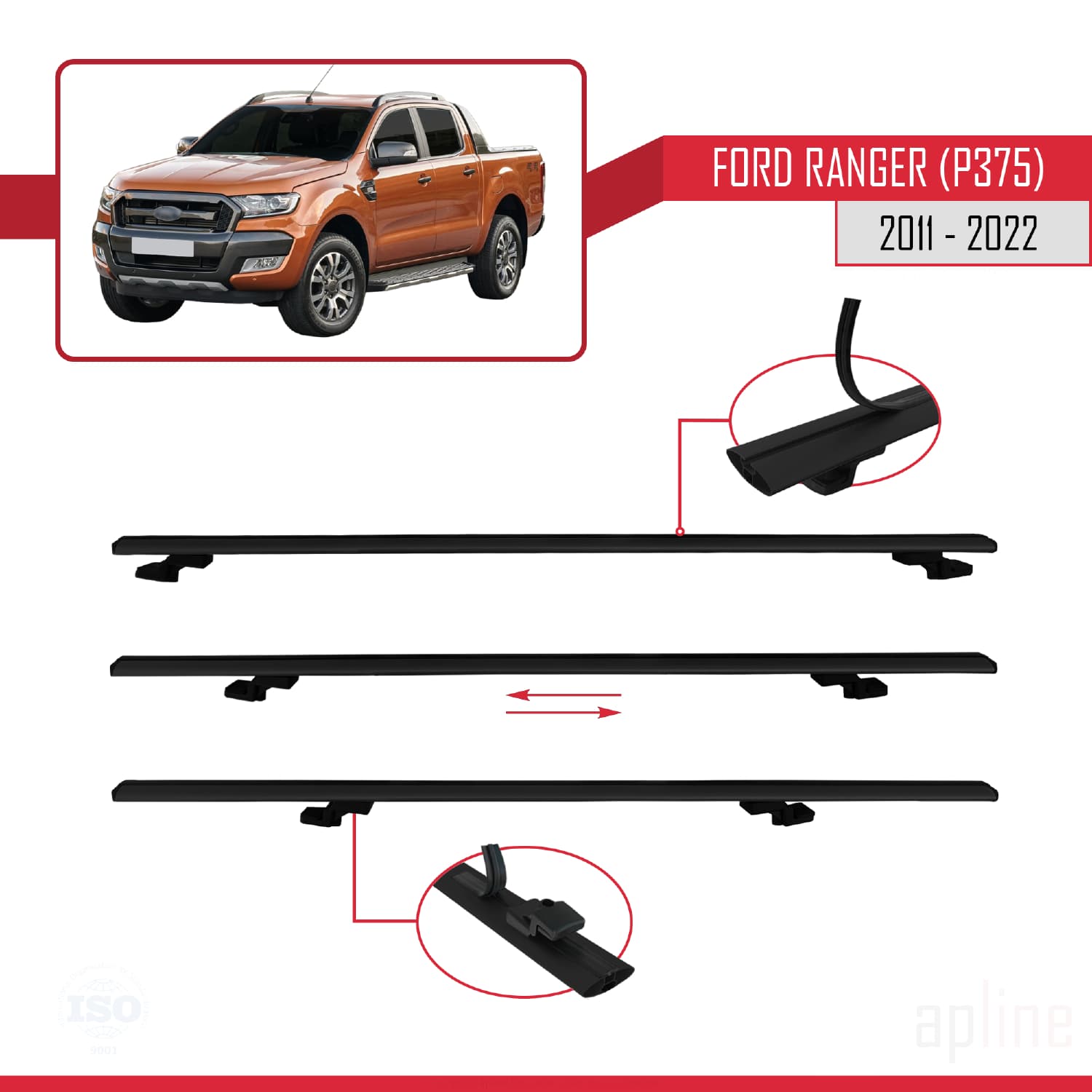 Compatible avec Ford Ranger (P375) 2011-2022 BASIC Model Barres de Toit Railing Porte-Bagages de Voiture Noir Aluminium 3 Barres