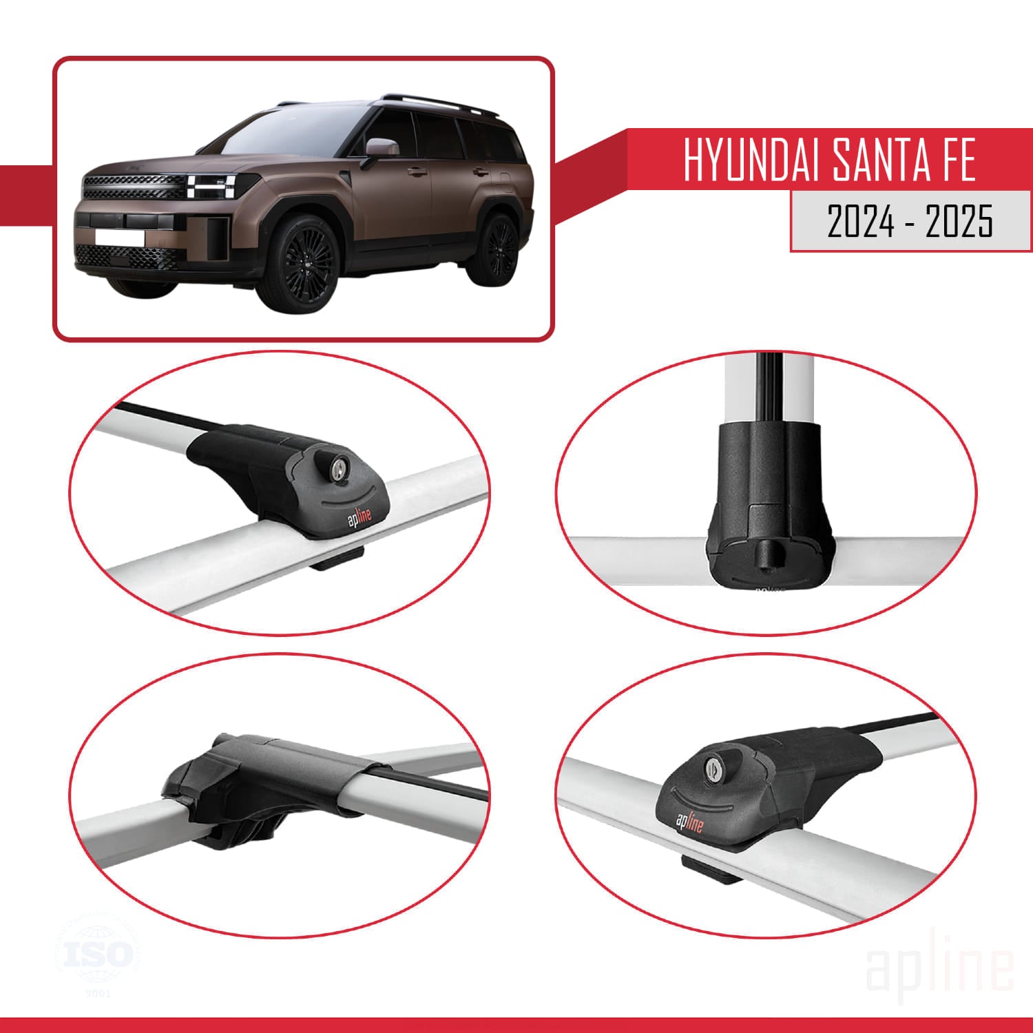 Compatible avec Hyundai Santa Fe 2024-2025 ACE-1 Barres de Toit Railing Porte-Bagages de Voiture Gris Aluminium 2 Barres