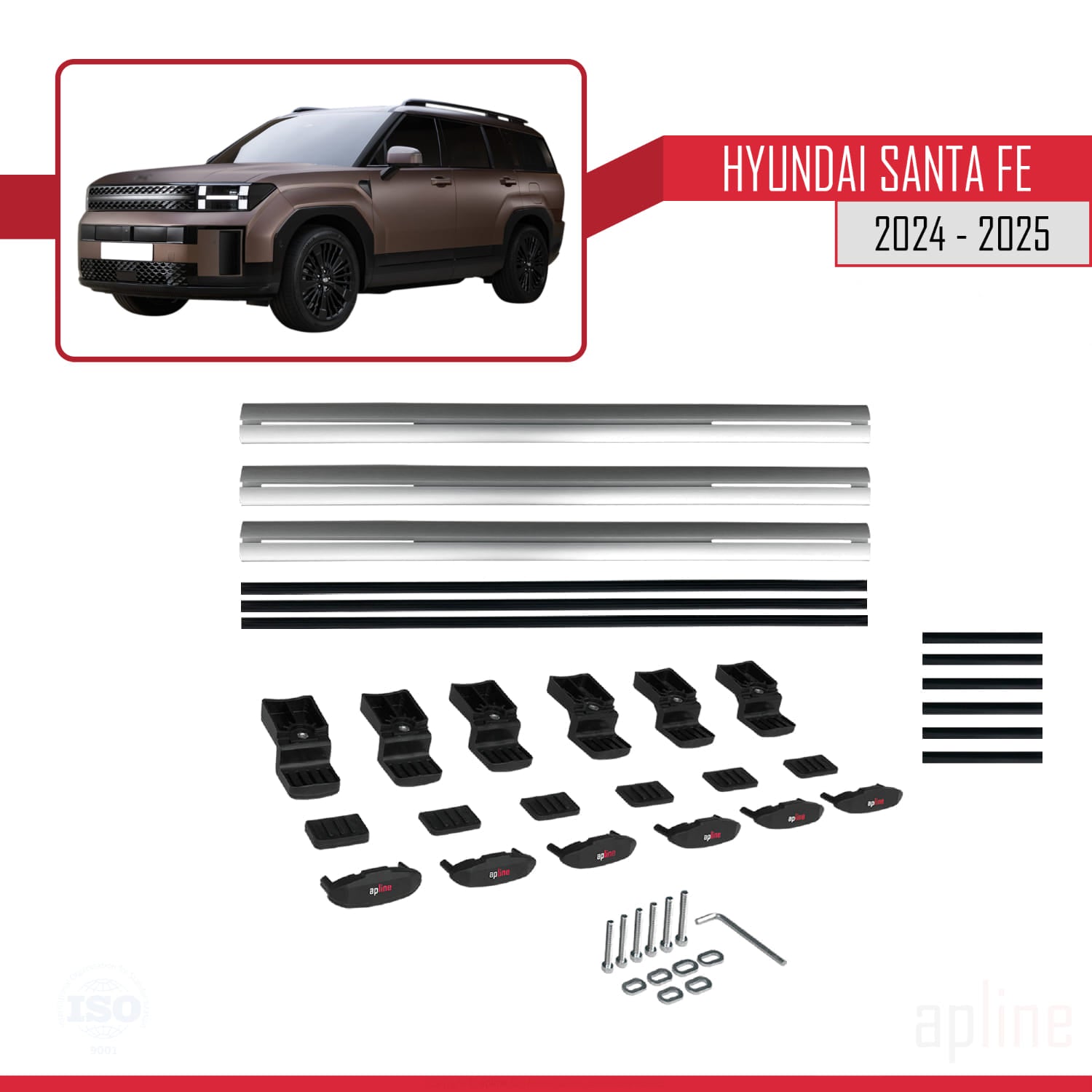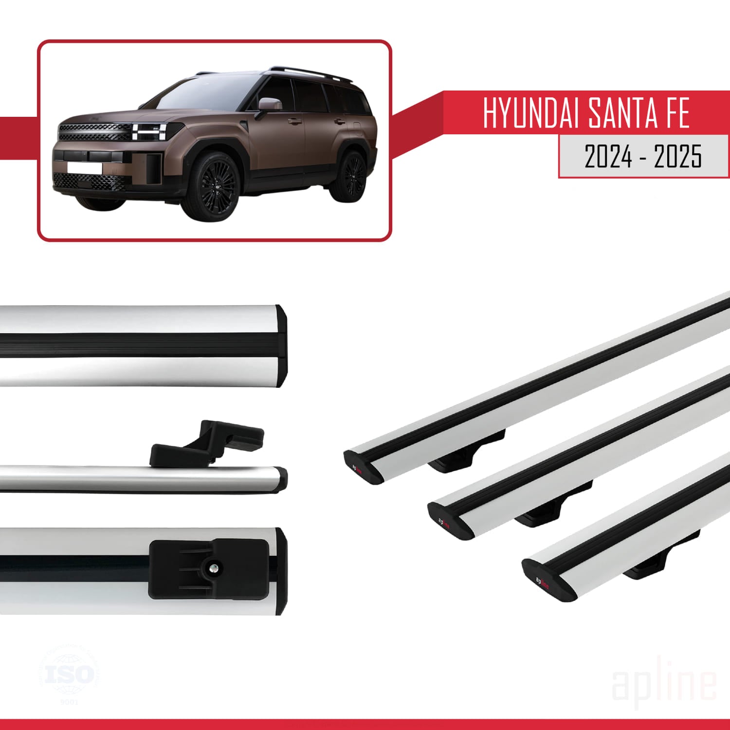 Compatible avec Hyundai Santa Fe 2024-2025 BASIC Model Barres de Toit Railing Porte-Bagages de Voiture Gris Aluminium 3 Barres