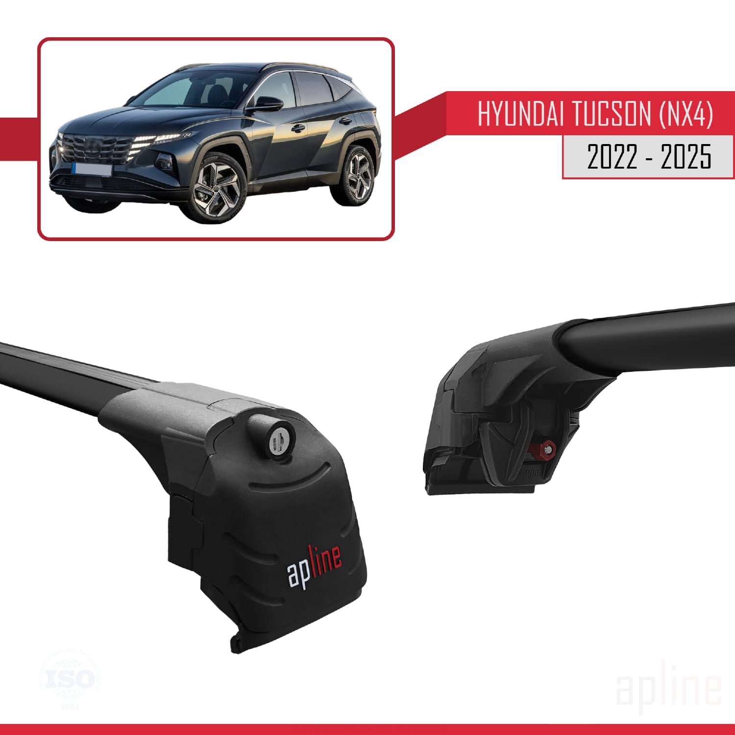 Compatible avec Hyundai Tucson 4 (NX4) 2022-2025 ACE-2 Barres de Toit Railing Porte-Bagages de Voiture Noir Aluminium 2 Barres