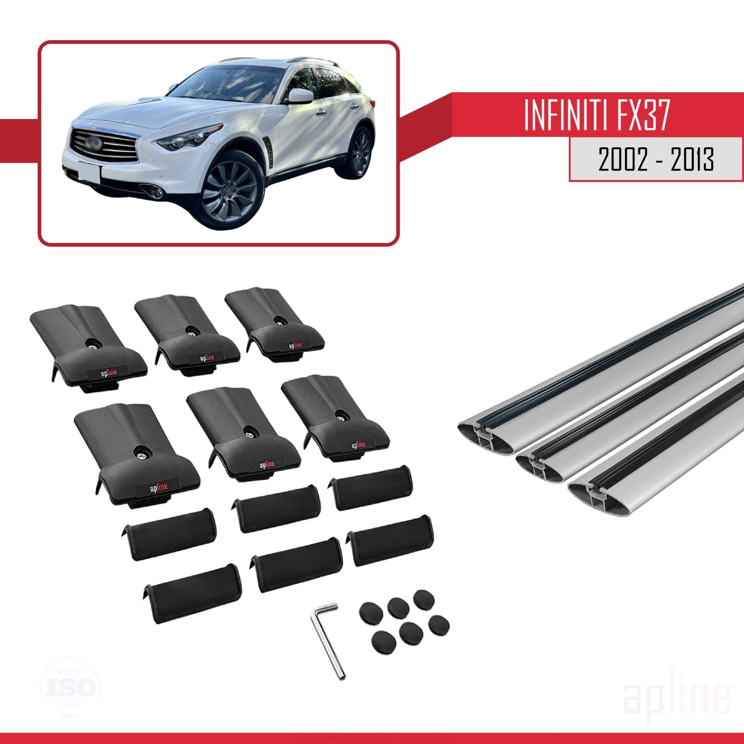Compatible avec Infiniti FX37 2002-2013 FLY Model Barres de Toit Railing Porte-Bagages de Voiture Gris Aluminium 3 Barres