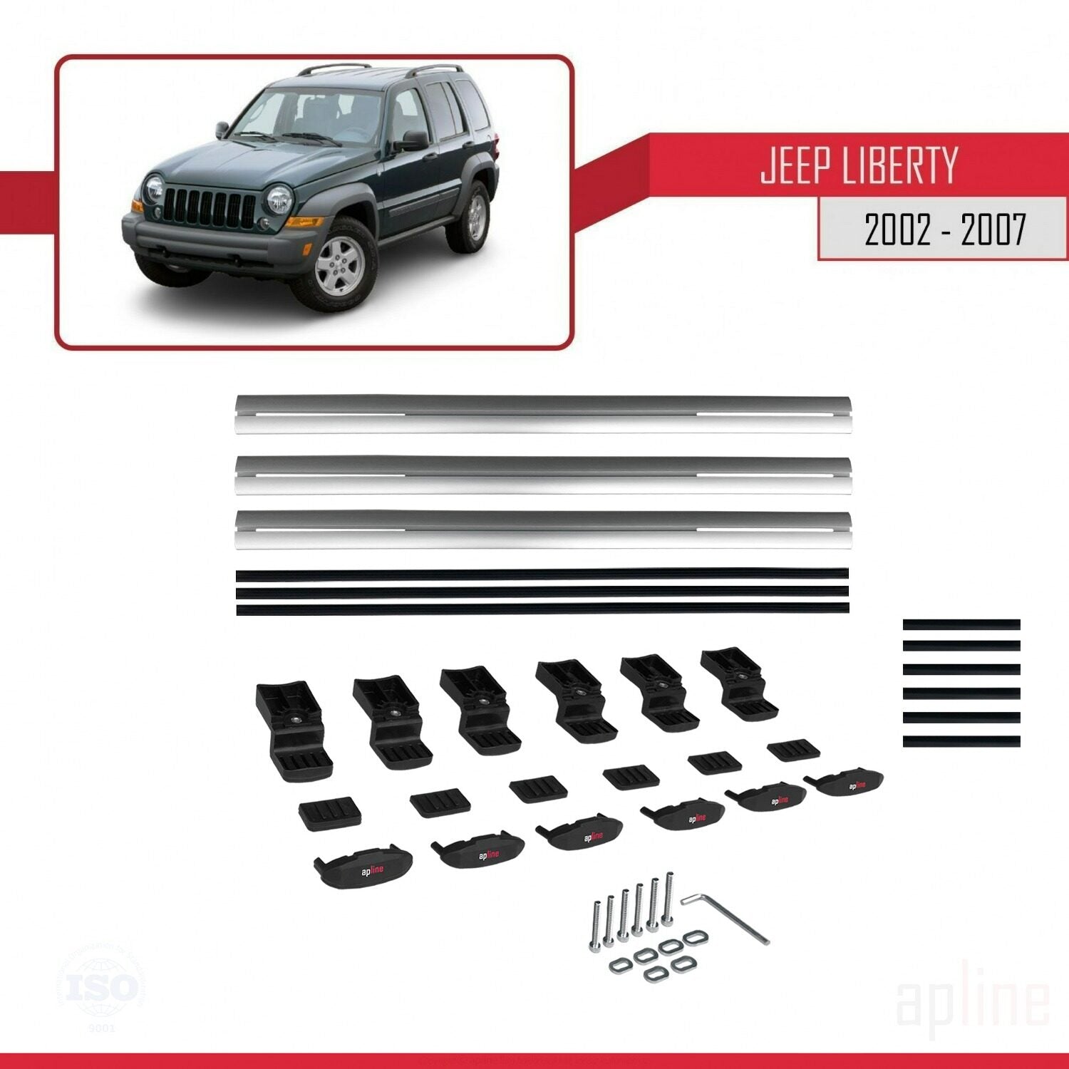 Compatible avec Jeep Liberty 2002-2007 BASIC Model Barres de Toit Railing Porte-Bagages de Voiture Gris Aluminium 3 Barres