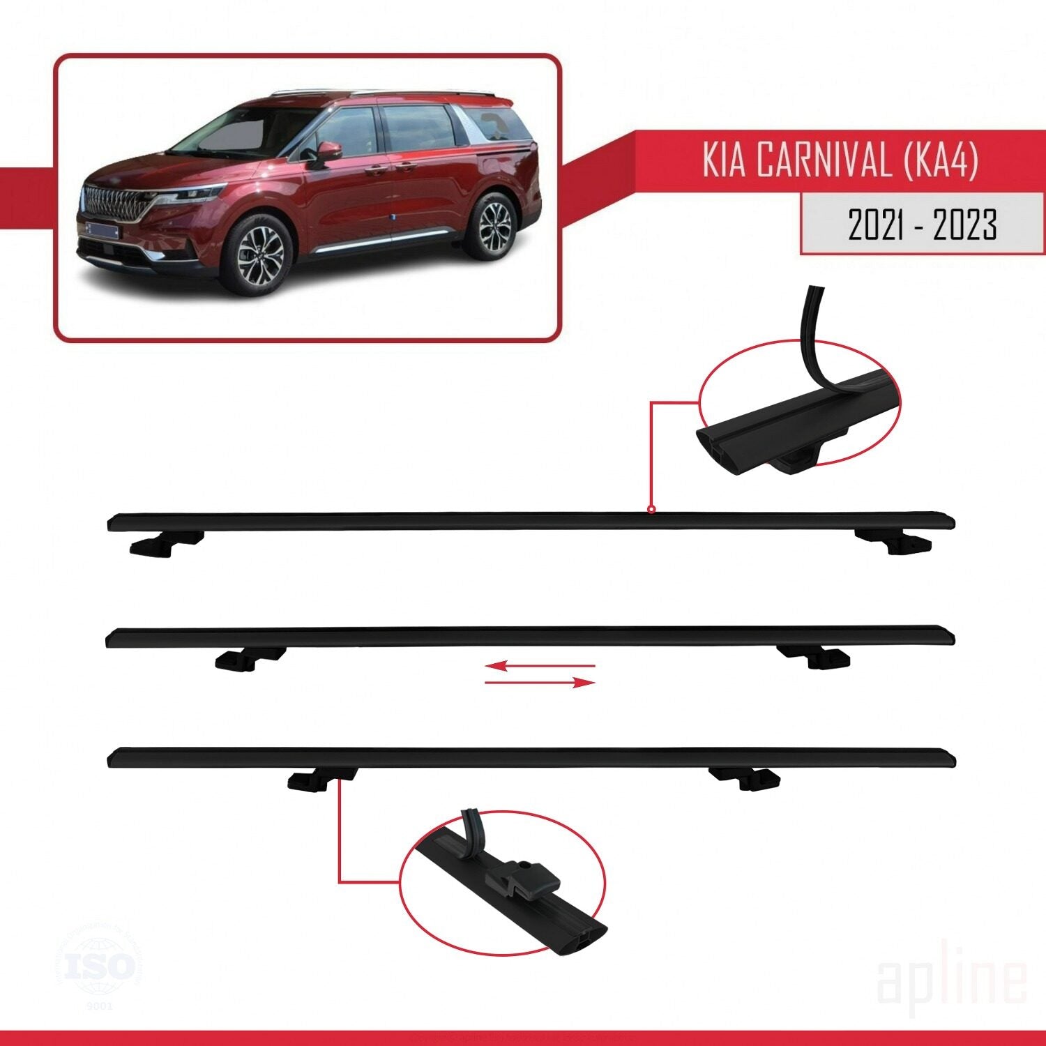 Compatible avec Kia Carnival 4 (KA4) 2021-2023 BASIC Model Barres de Toit Railing Porte-Bagages de Voiture Noir Aluminium 3 Barres