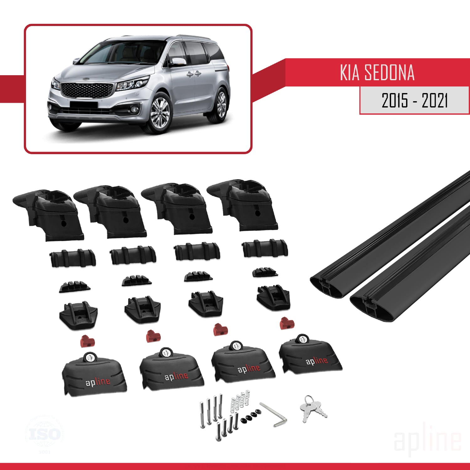 Compatible avec Kia Sedona 3 (YP) 2015-2021 ACE-2 Barres de Toit Railing Porte-Bagages de Voiture Noir Aluminium 2 Barres