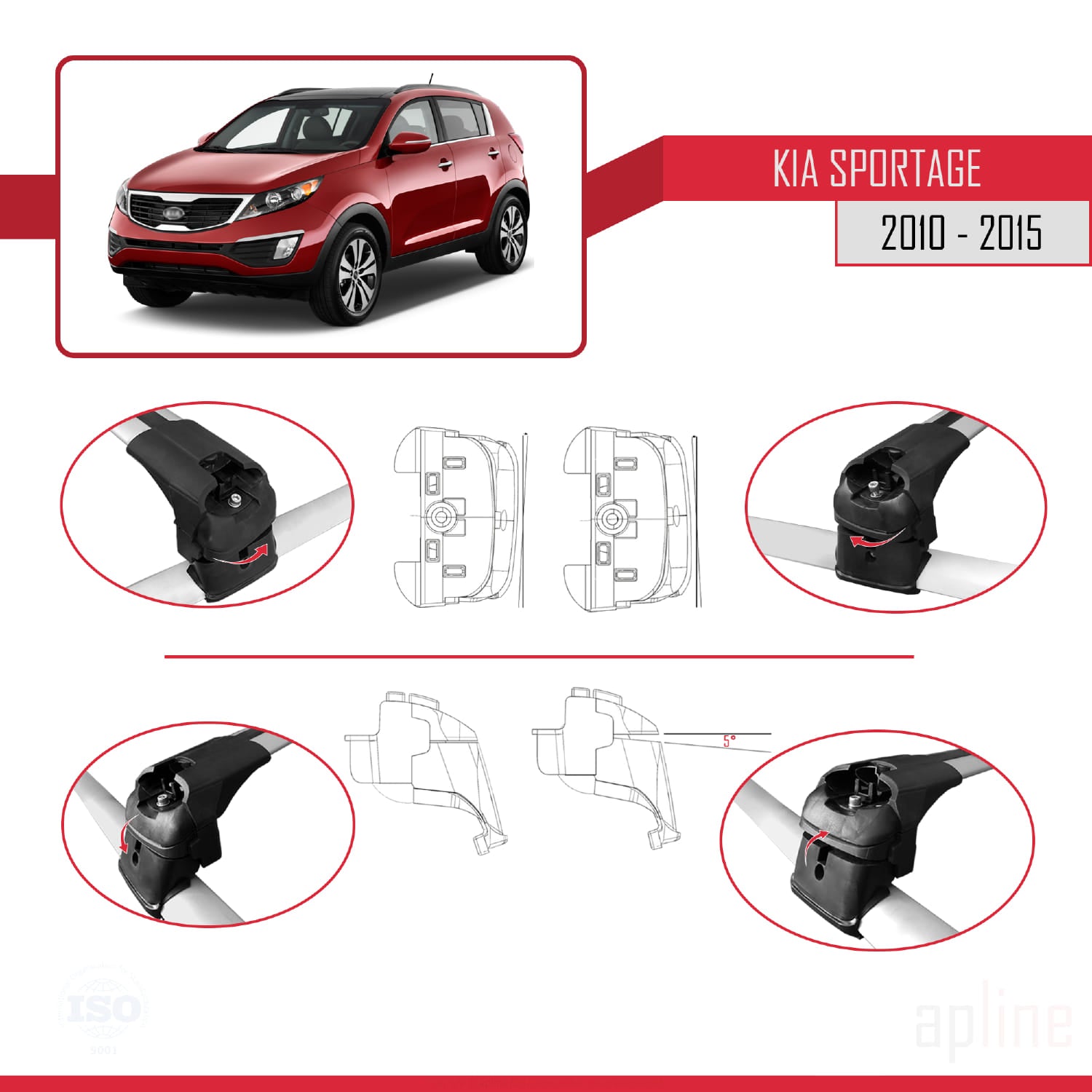 Compatible avec Kia Sportage 3 (SL) 2010-2015 ACE-2 Barres de Toit Railing Porte-Bagages de Voiture Gris Aluminium 2 Barres