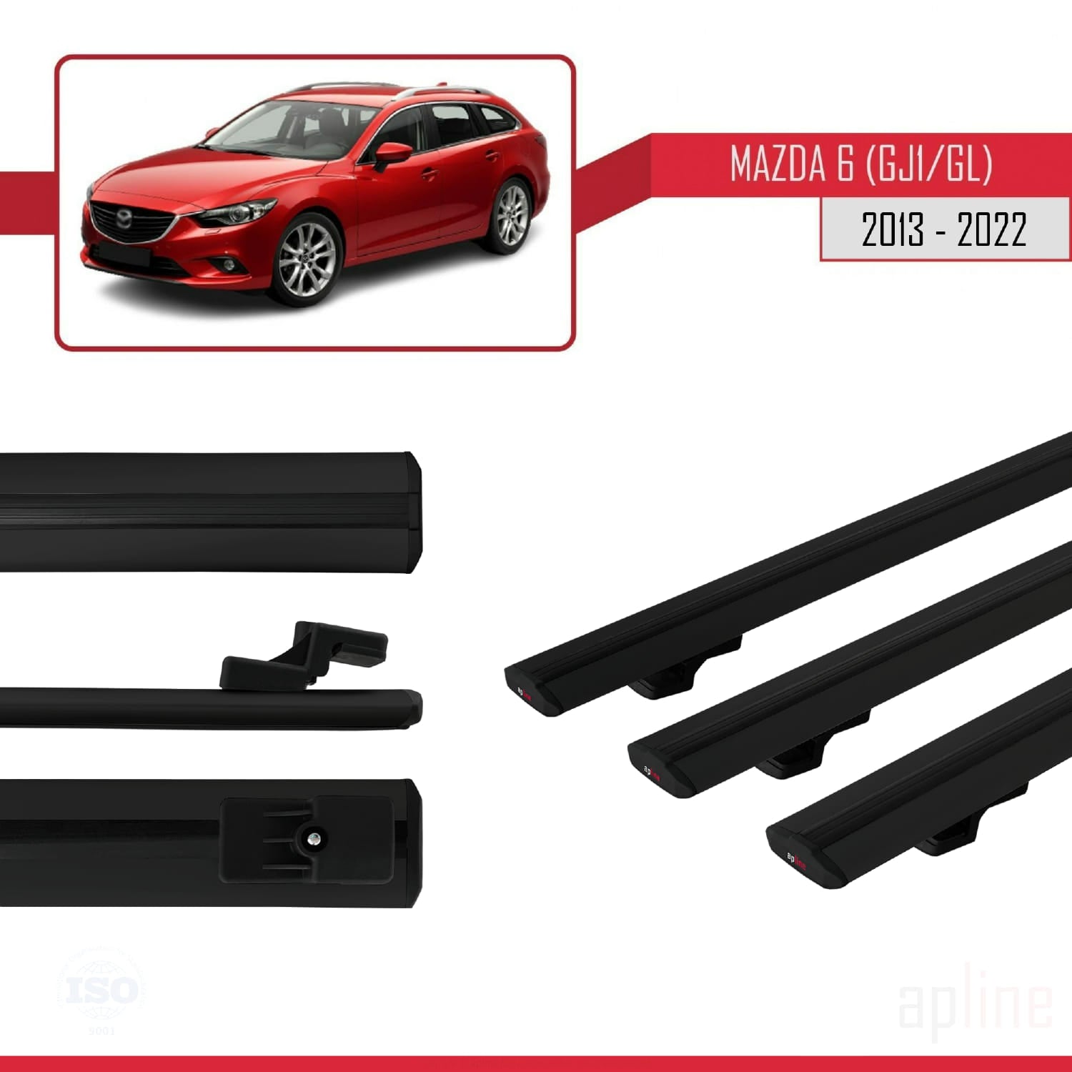 Compatible avec Mazda 6 III (GJ1/GL) 2013-2022 BASIC Model Barres de Toit Railing Porte-Bagages de Voiture Noir Aluminium 3 Barres