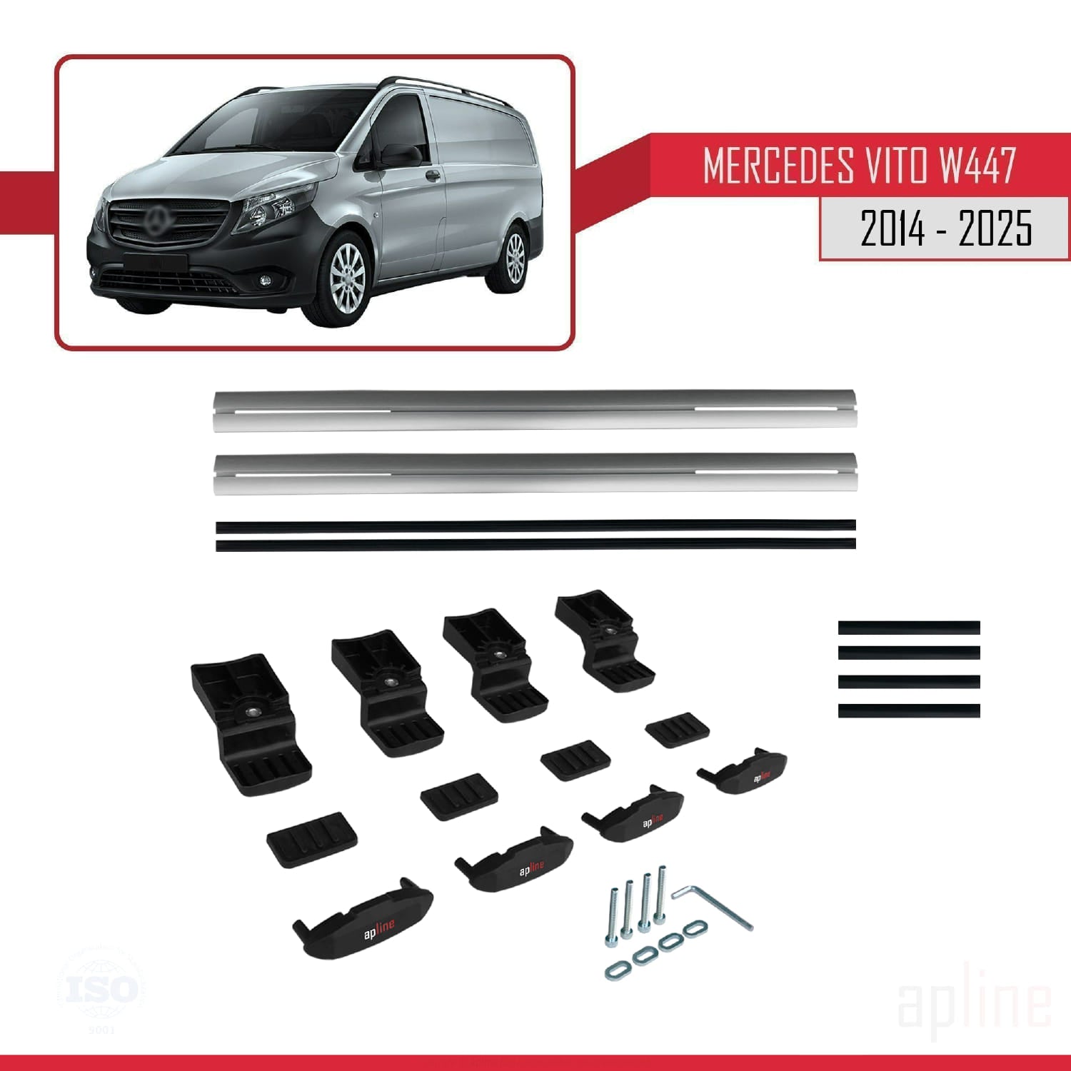 Compatible avec Mercedes Vito 3 (W447) 2014-2025 BASIC Model Barres de Toit Railing Porte-Bagages de Voiture Gris Aluminium 2 Barres