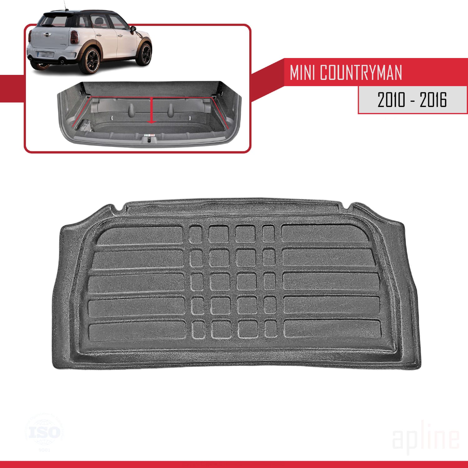 Compatible avec Mini Countryman (R60) 2010-2016 Flexible Tapis de Coffre Plancher de Chargement Noir