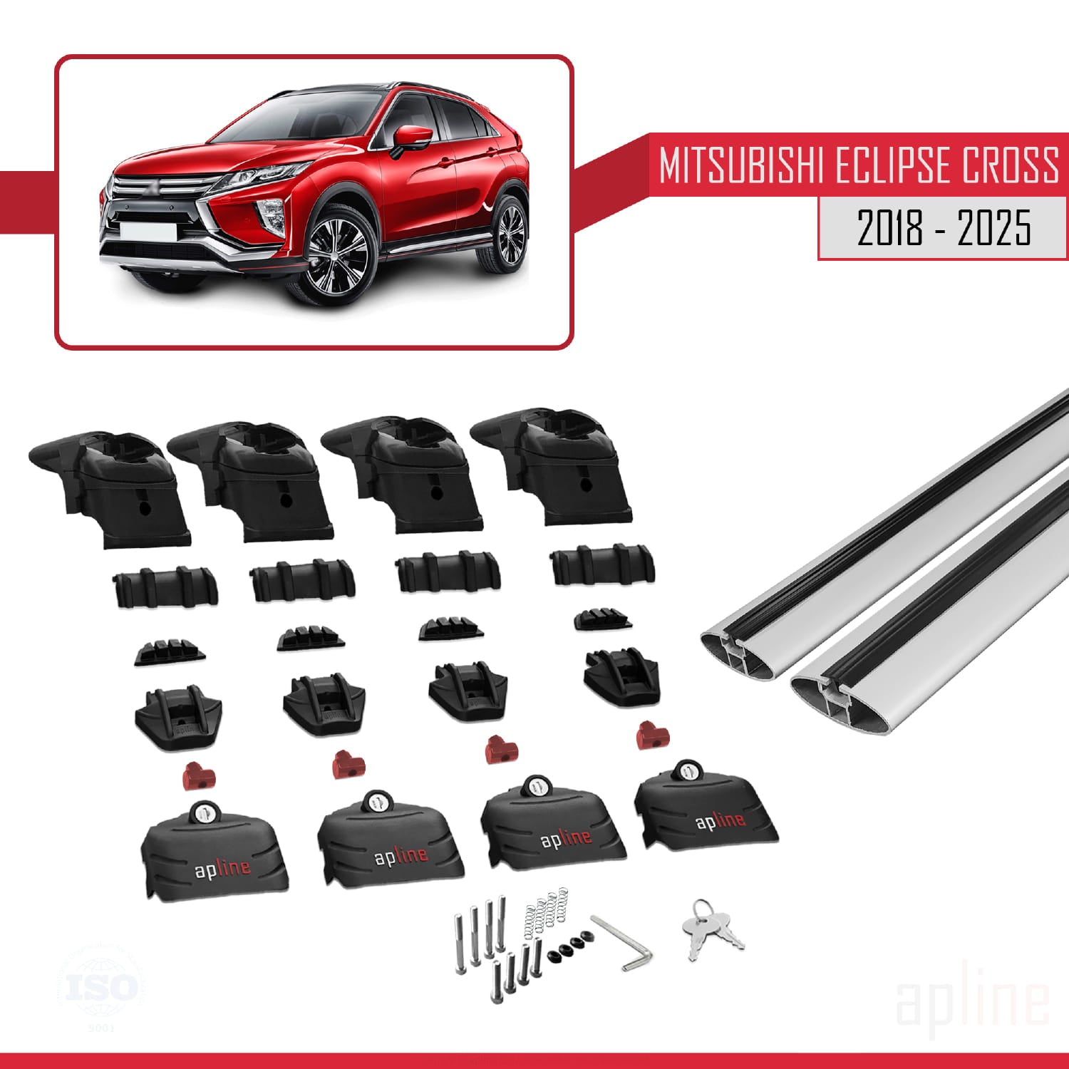 Compatible avec Mitsubishi Eclipse Cross (GK) 2018-2025 ACE-2 Barres de Toit Railing Porte-Bagages de Voiture Gris Aluminium 2 Barres