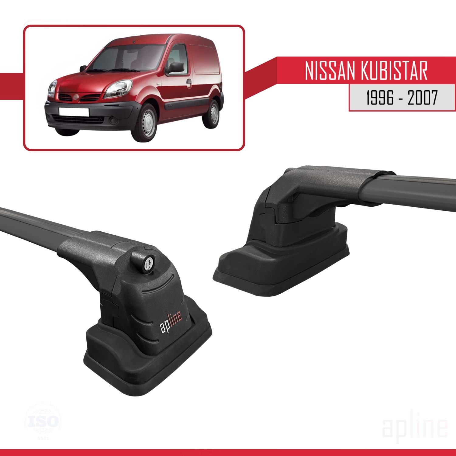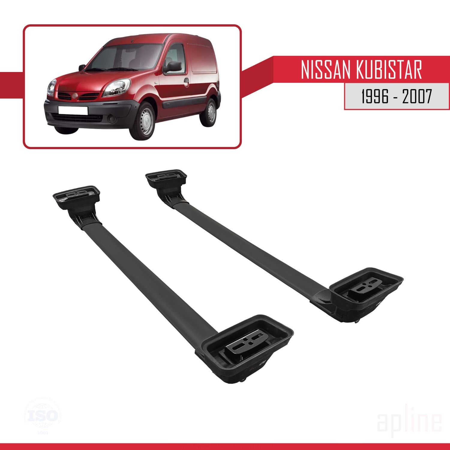 Compatible avec Nissan Kubistar 1996-2007 ACE-3 Barres de Toit Railing Porte-Bagages de Voiture Noir Aluminium 2 Barres