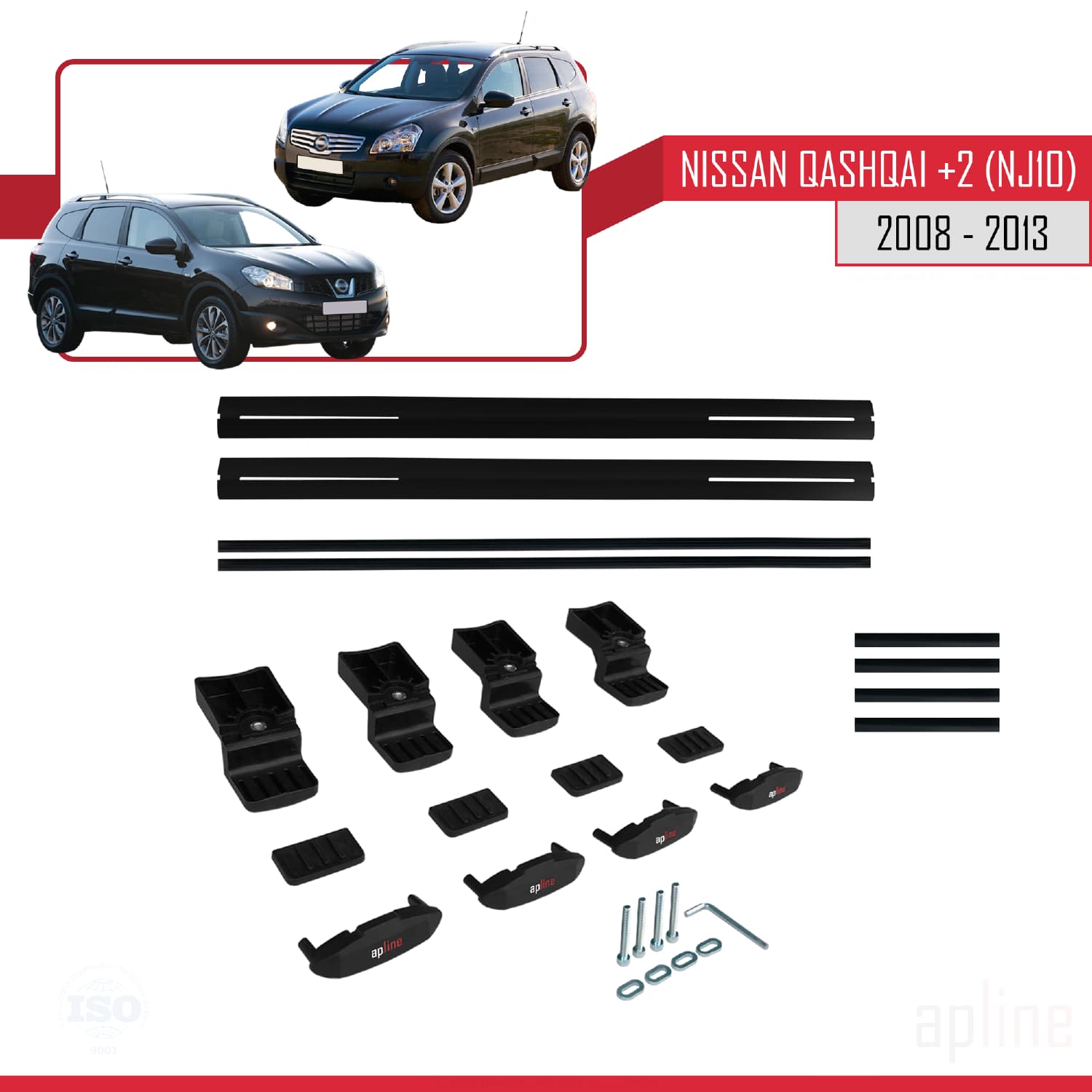Compatible avec Nissan Qashqai +2 (NJ10) 2008-2013 BASIC Model Barres de Toit Railing Porte-Bagages de Voiture Noir Aluminium 2 Barres