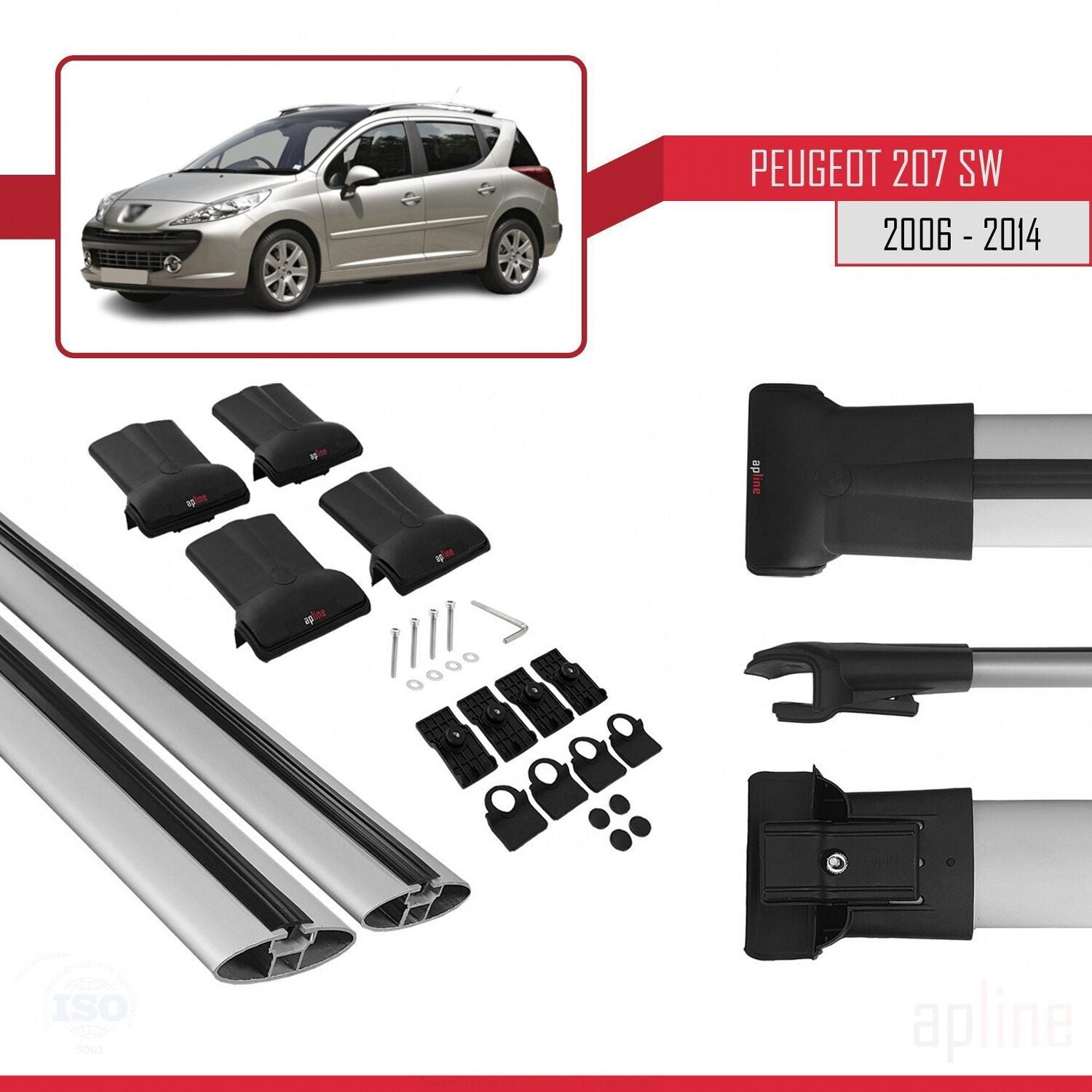 Compatible avec Peugeot 207 Break 2006-2014 FLY Model Barres de Toit Railing Porte-Bagages de Voiture Gris Aluminium 2 Barres