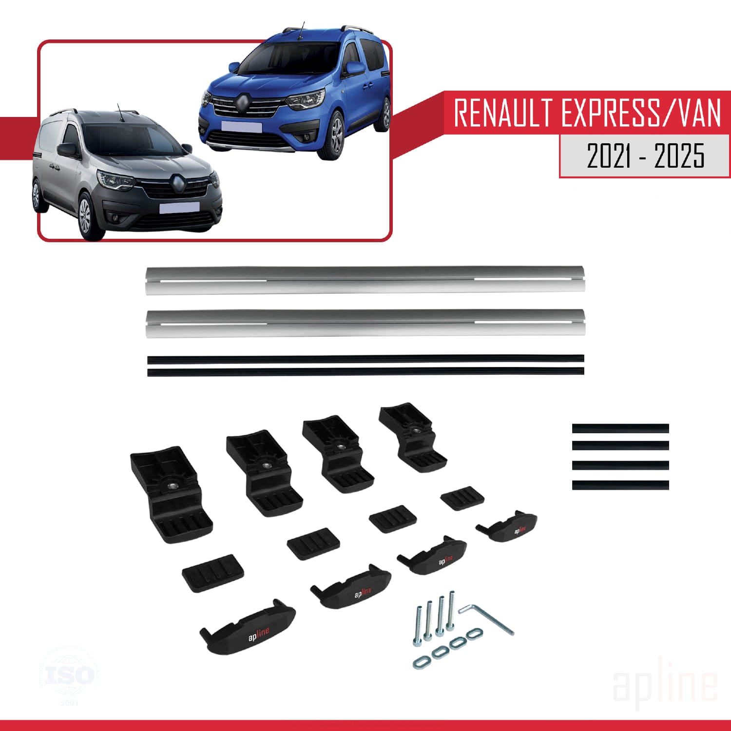 Compatible avec Renault Express 2021-2025 BASIC Model Barres de Toit Railing Porte-Bagages de Voiture Gris Aluminium 2 Barres