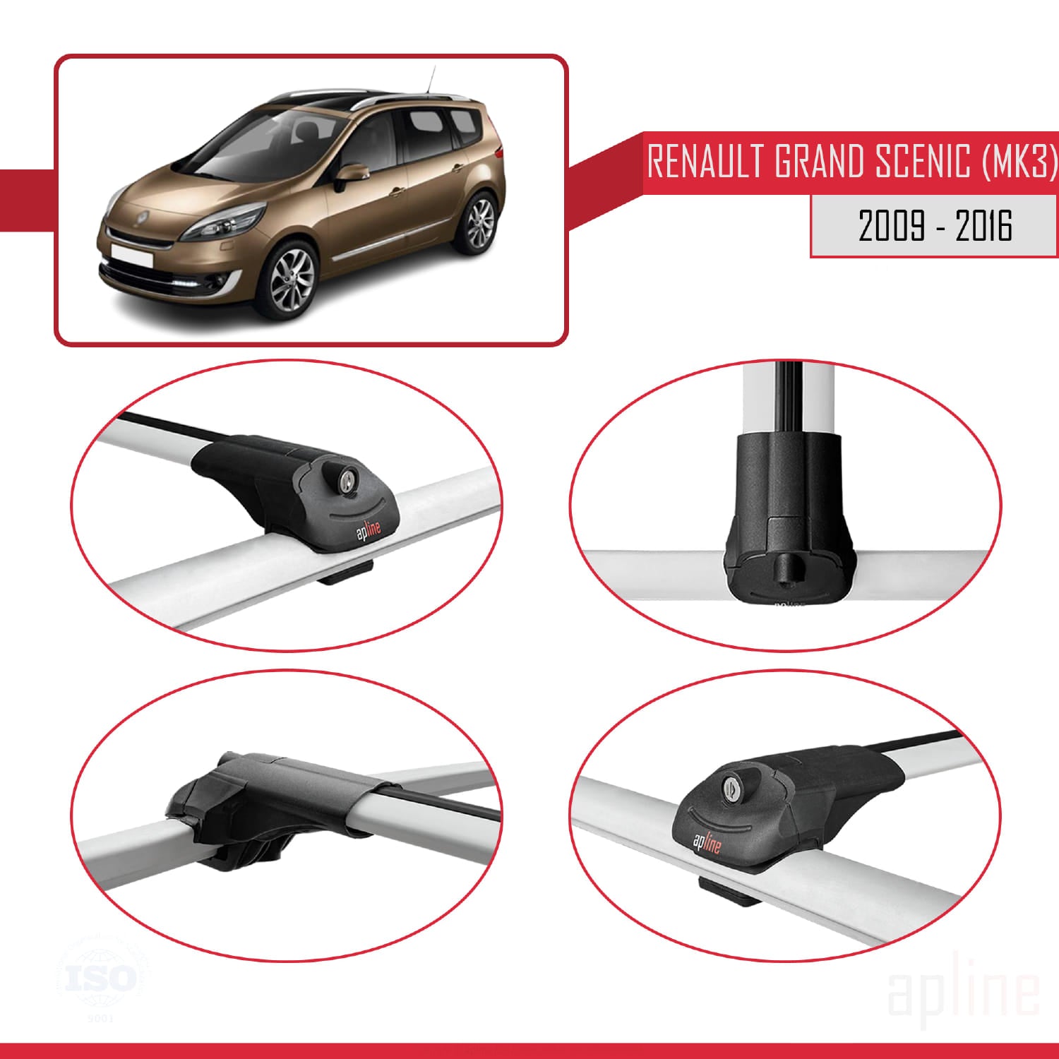 Compatible avec Renault Grand Scenic 3 2009-2016 ACE-1 Barres de Toit Railing Porte-Bagages de Voiture Gris Aluminium 2 Barres