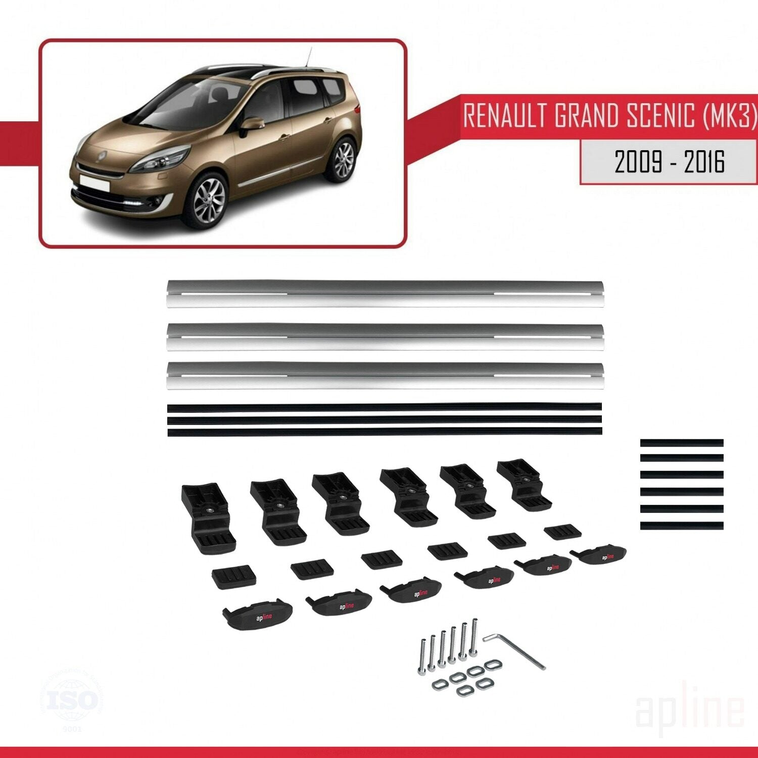 Compatible avec Renault Grand Scenic 3 2009-2016 BASIC Model Barres de Toit Railing Porte-Bagages de Voiture Gris Aluminium 3 Barres