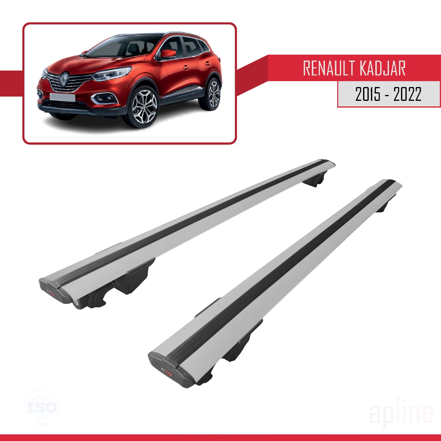 Compatible avec Renault Kadjar 2015-2022 HOOK Model Barres de Toit Railing Porte-Bagages de Voiture Gris Aluminium 2 Barres