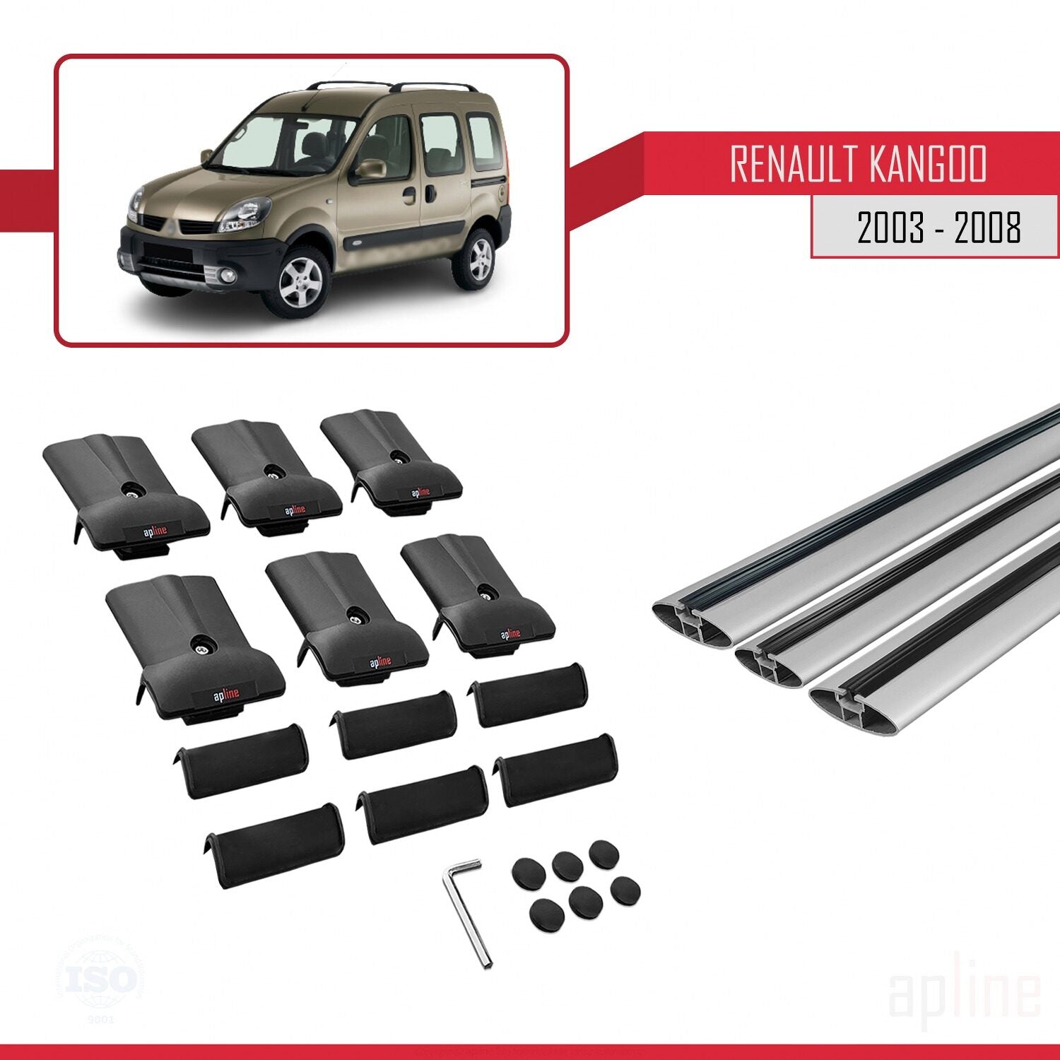 Compatible avec Renault Kangoo (X76) Post-Facelift 2003-2008 FLY Model Barres de Toit Railing Porte-Bagages de Voiture Gris Aluminium 3 Barres