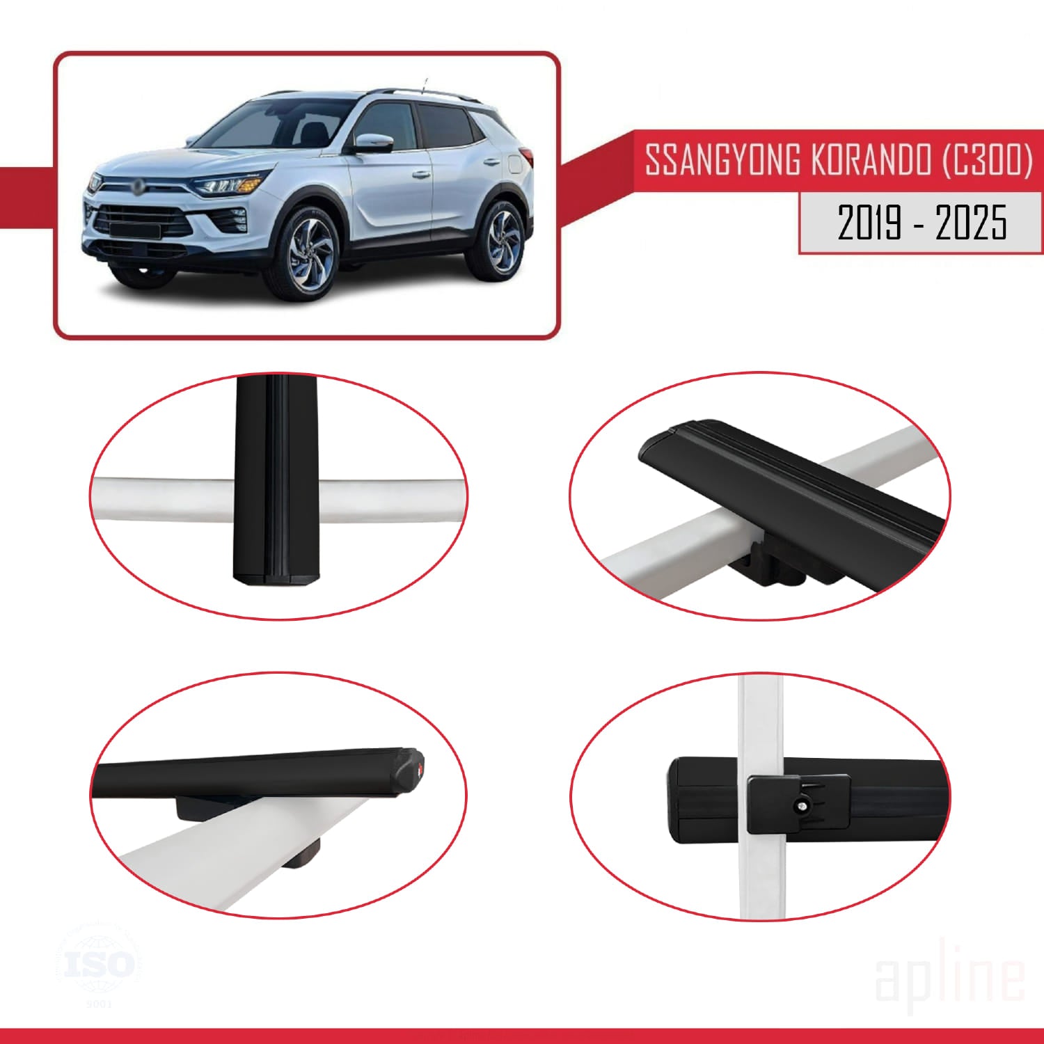 Compatible avec Ssangyong Korando 4 (C300) 2019-2025 BASIC Model Barres de Toit Railing Porte-Bagages de Voiture Noir Aluminium 3 Barres