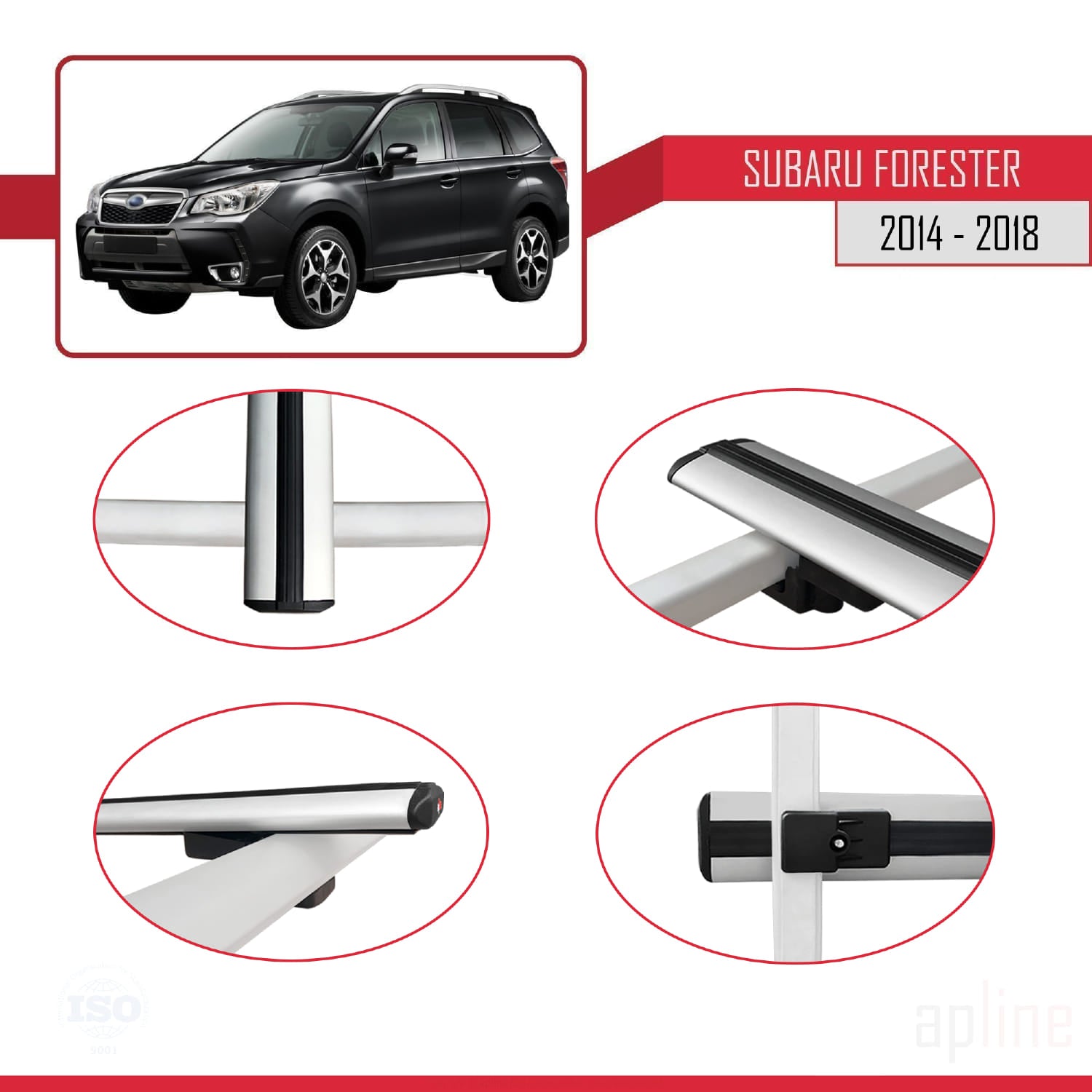 Compatible avec Subaru Forester 4 (SJ) 2014-2018 BASIC Model Barres de Toit Railing Porte-Bagages de Voiture Gris Aluminium 3 Barres