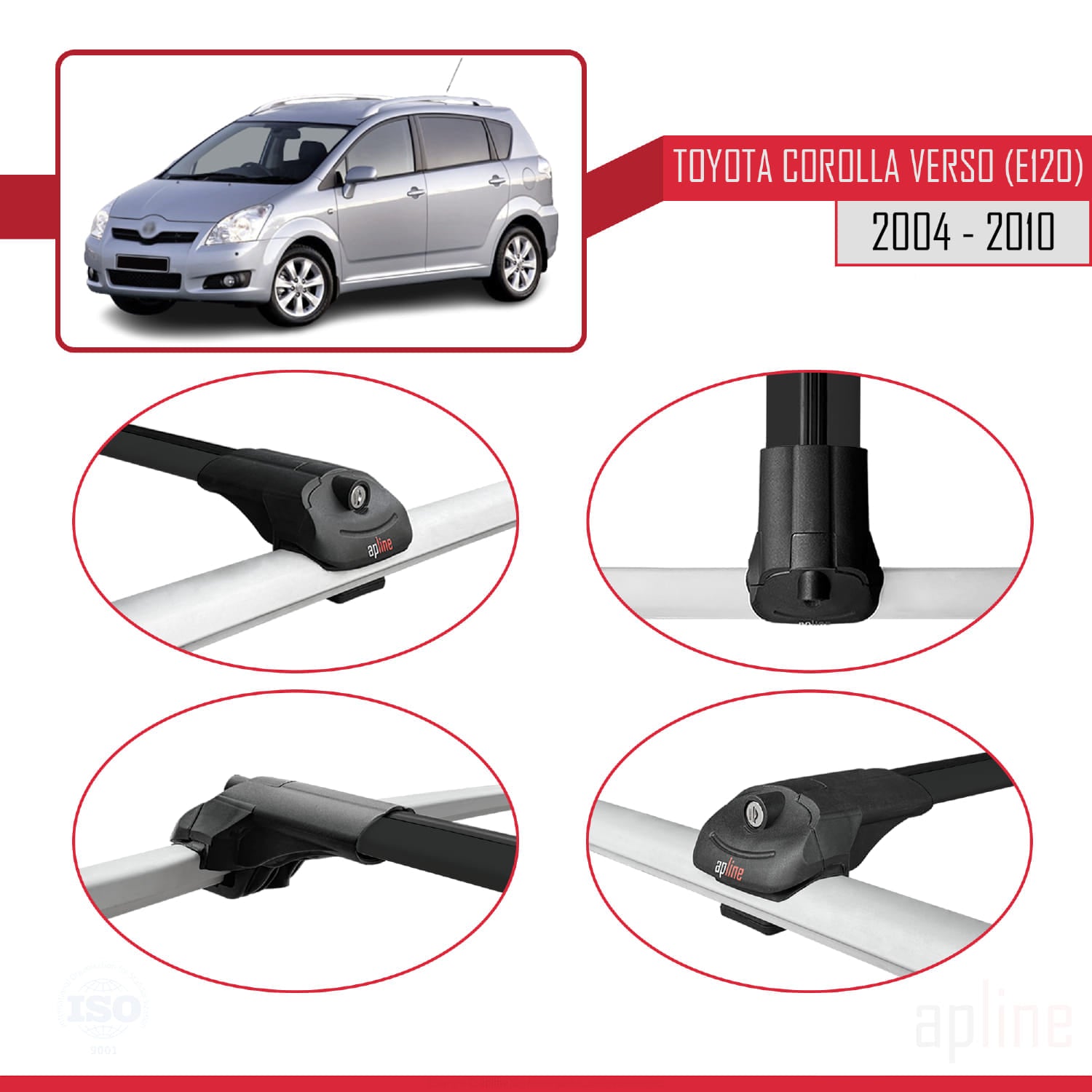 Compatible avec Toyota Corolla Verso 2 (AR10) 2004-2010 ACE-1 Barres de Toit Railing Porte-Bagages de Voiture Noir Aluminium 3 Barres