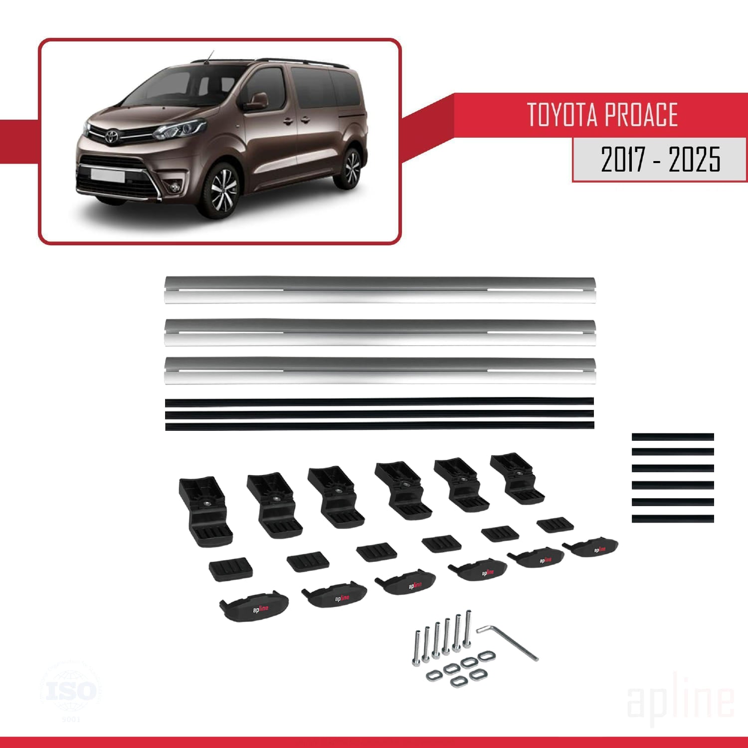 Compatible avec Toyota Proace 2017-2025 BASIC Model Barres de Toit Railing Porte-Bagages de Voiture Gris Aluminium 3 Barres