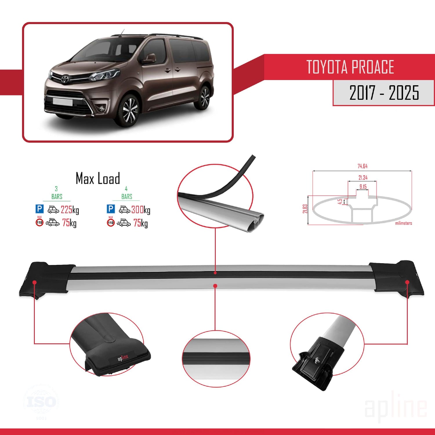 Compatible avec Toyota Proace 2017-2025 FLY Model Barres de Toit Railing Porte-Bagages de Voiture Gris Aluminium 3 Barres
