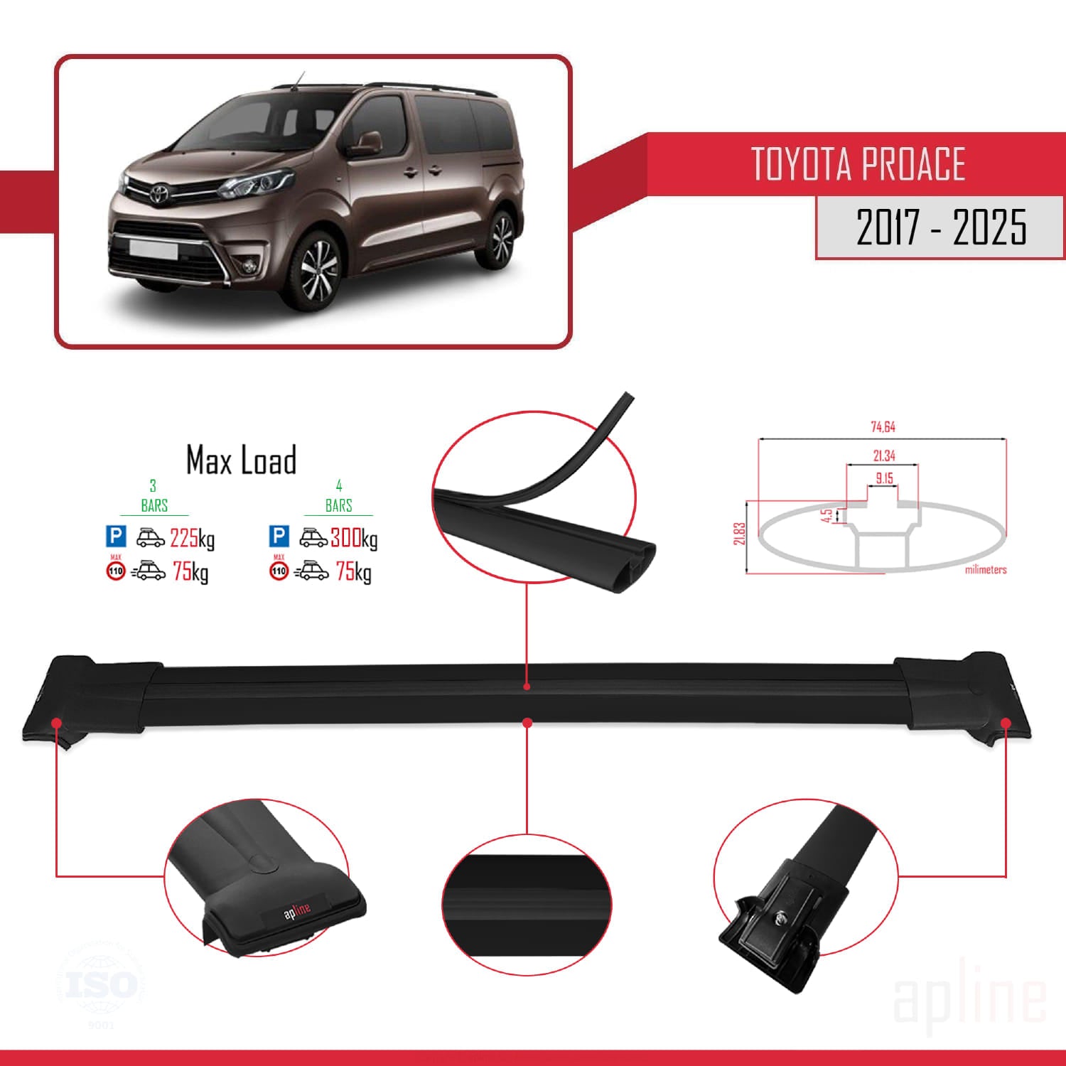 Compatible avec Toyota Proace 2017-2025 FLY Model Barres de Toit Railing Porte-Bagages de Voiture Noir Aluminium 4 Barres